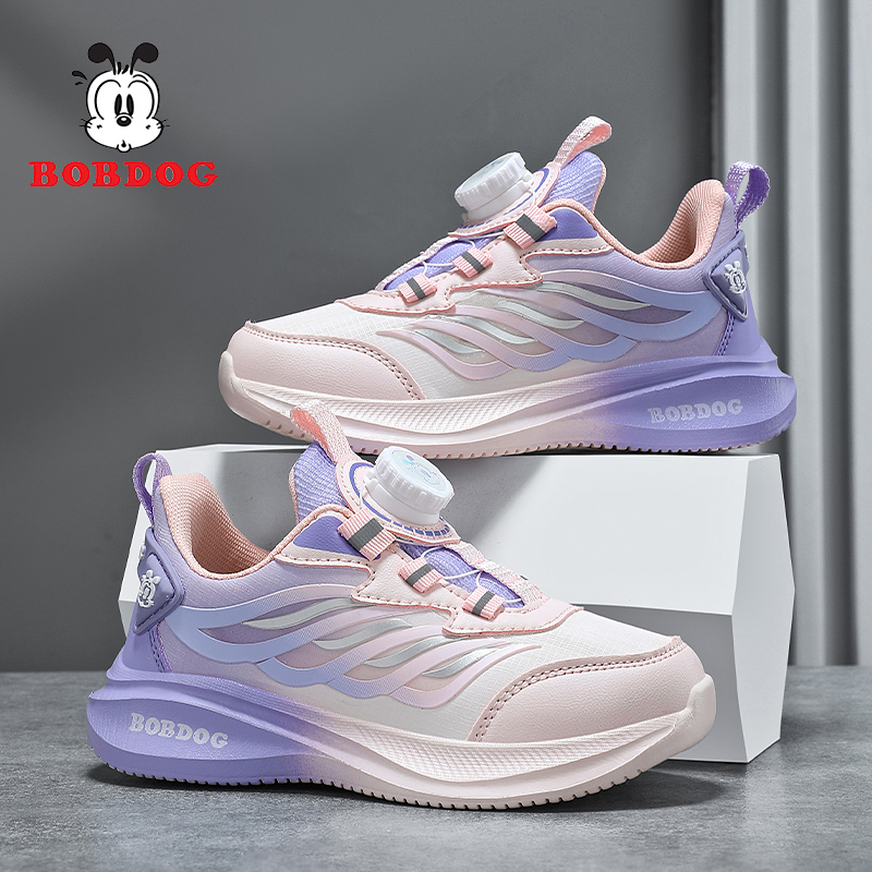 巴布豆童鞋女童网面透气运动鞋2025春秋新款秋季皮面防水儿童鞋子