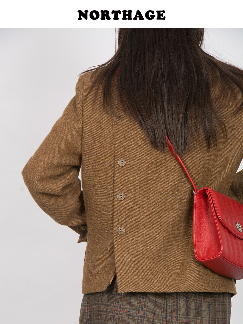 Northage2025秋冬精纺纯羊毛单排扣古着通勤英伦宽松长袖西装外套