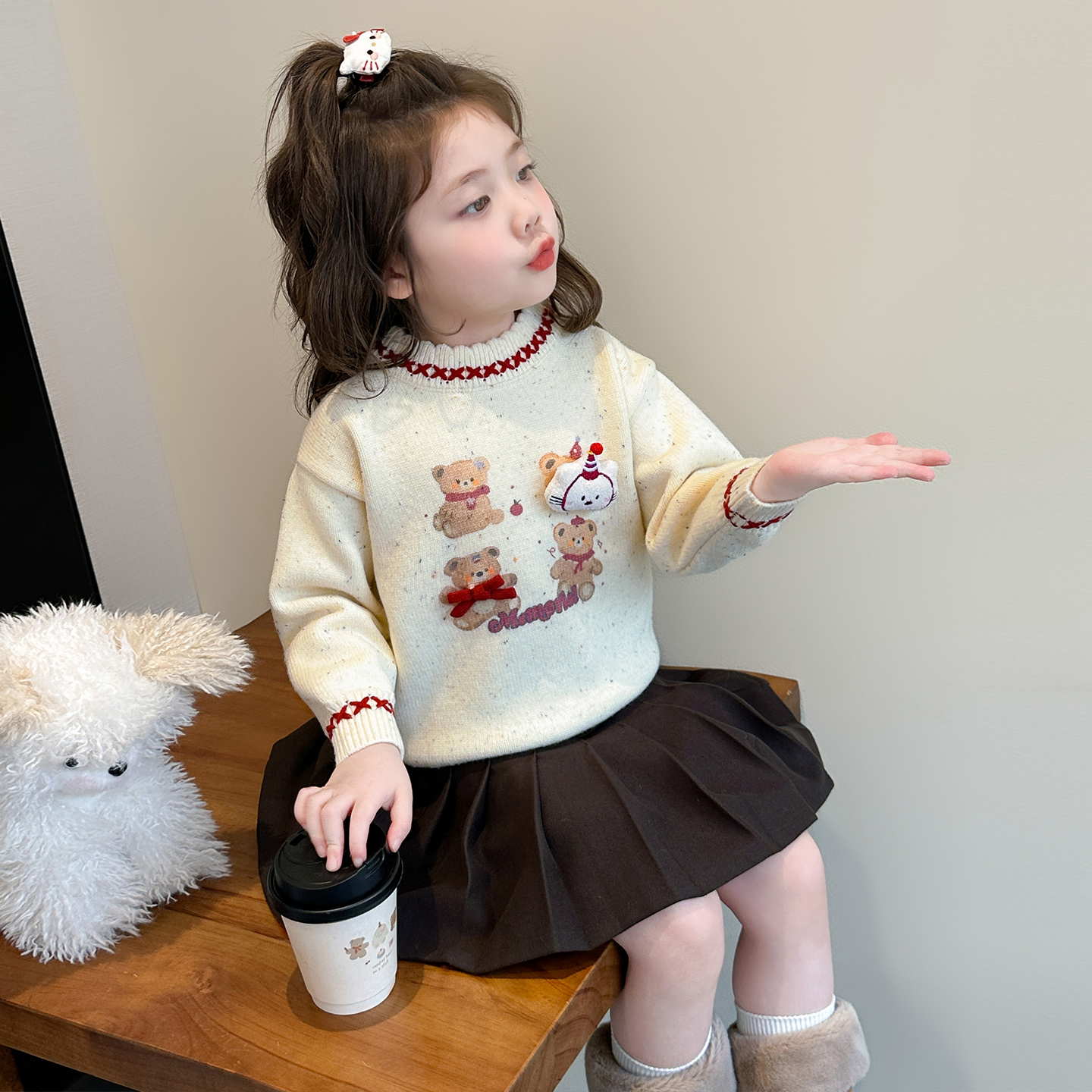 女童针织毛衣圆领小女孩打底衫保暖加厚上衣秋冬女宝宝小熊毛衣潮