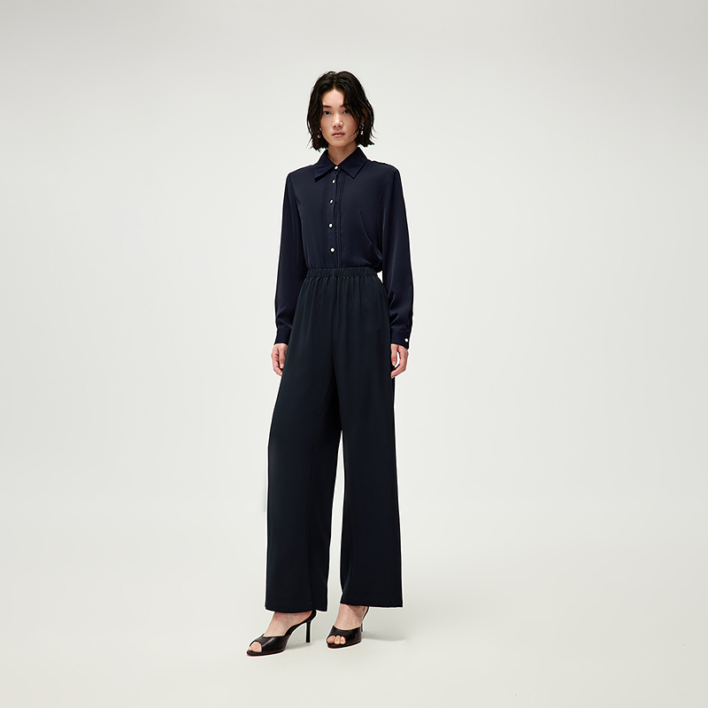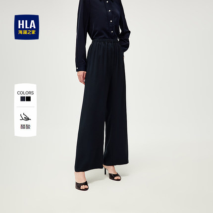 HLA/海澜之家休闲九分裤25春夏新含醋酸松紧腰有型阔腿慵懒裤女装