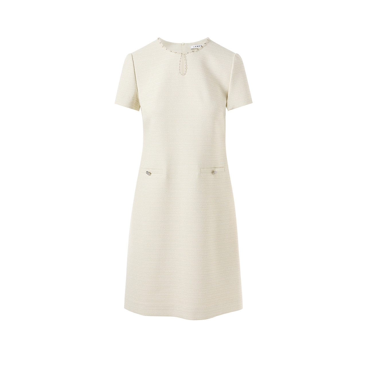 LANCY/朗姿2025夏季新款小香风圆领直筒高端名媛精致显瘦连衣裙短