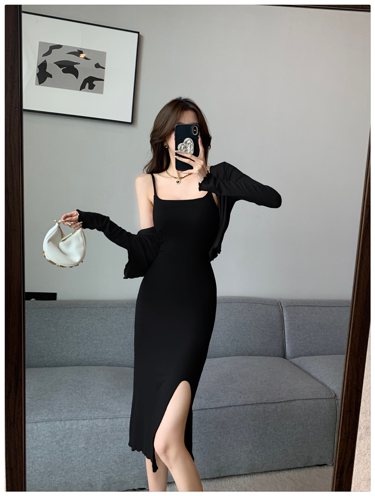 辣妹吊带开衫两件套连衣裙女2024春秋新款修身开叉性感包臀中长裙