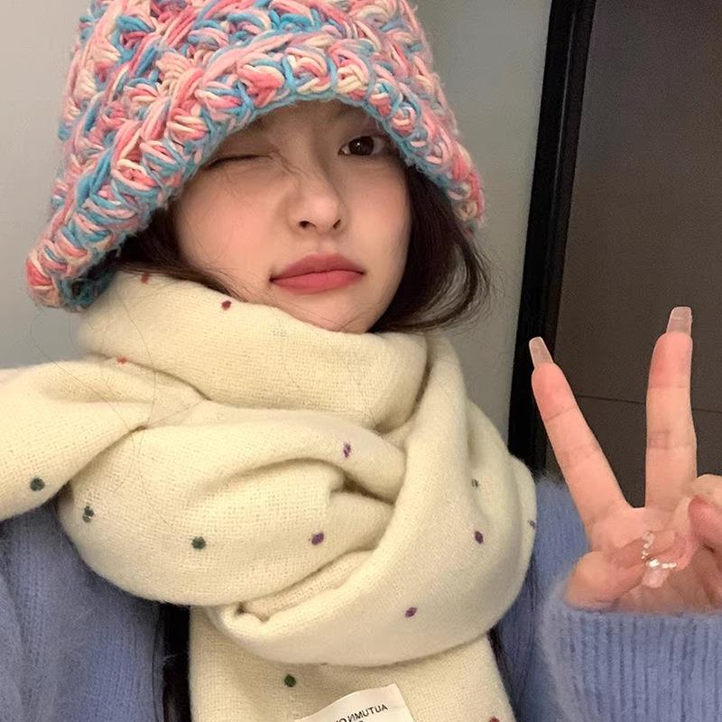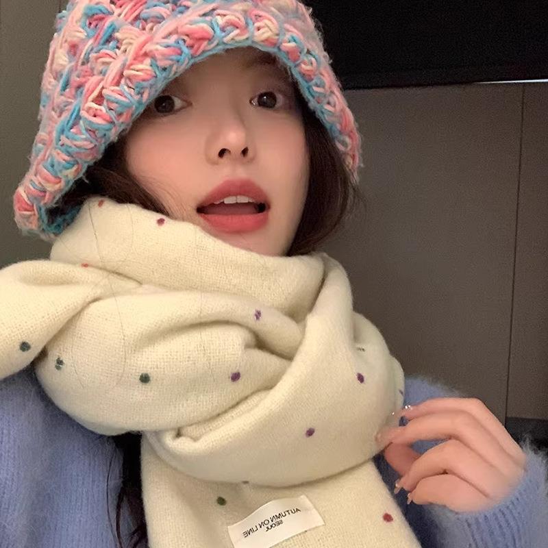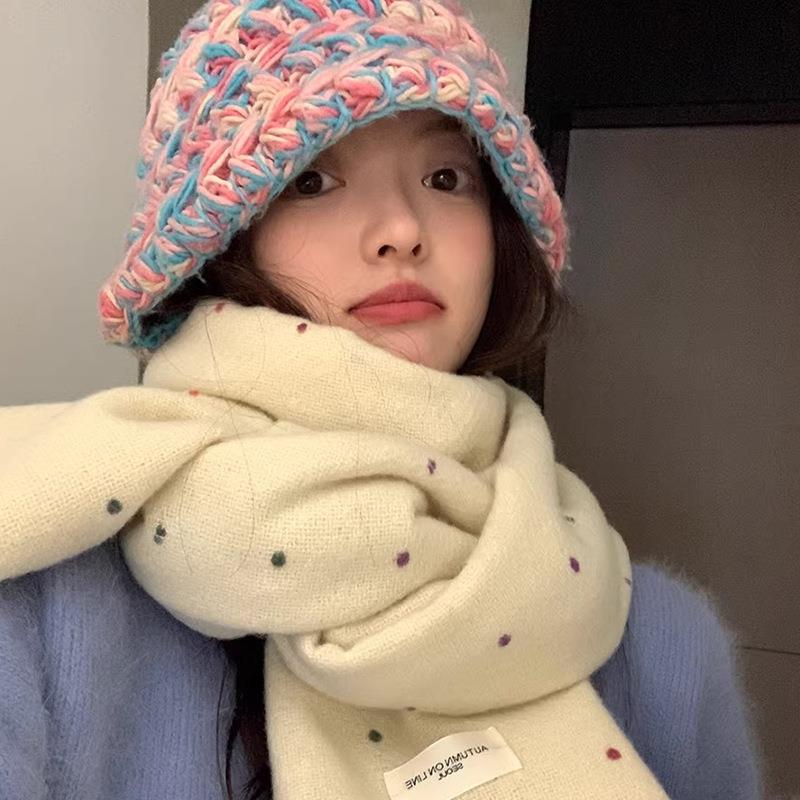 彩虹糖点小众围巾女秋冬季2025新款围脖披肩两用氛围感纯色批发