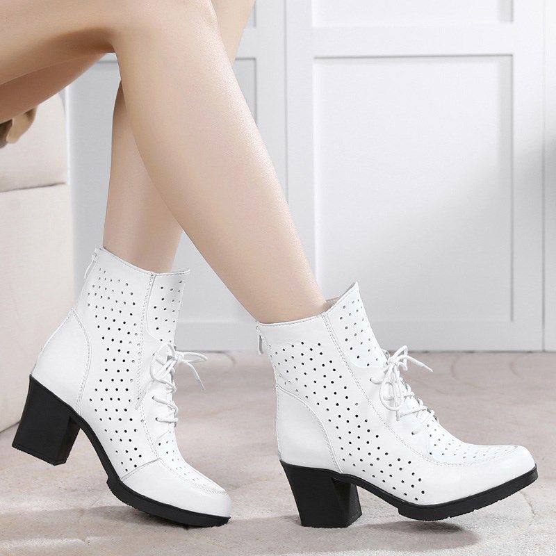 真皮镂空女靴春季新款2025百搭短靴粗跟英伦风马丁靴女鞋春秋单靴