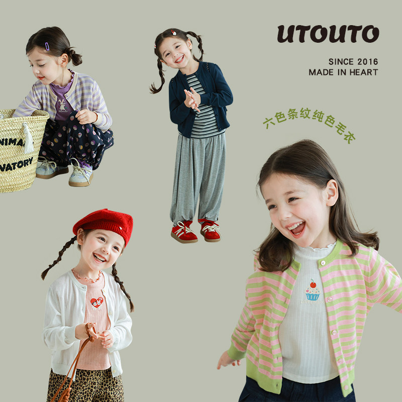 大耳象女童条纹纯色开衫夏款空调针织休闲长袖外套