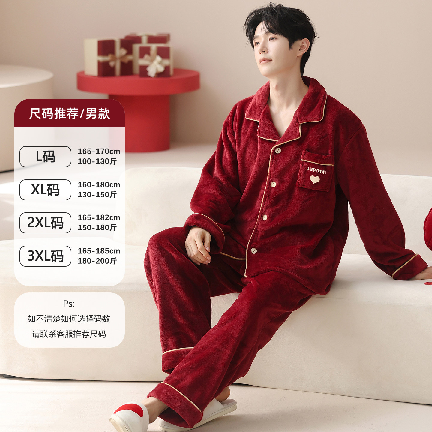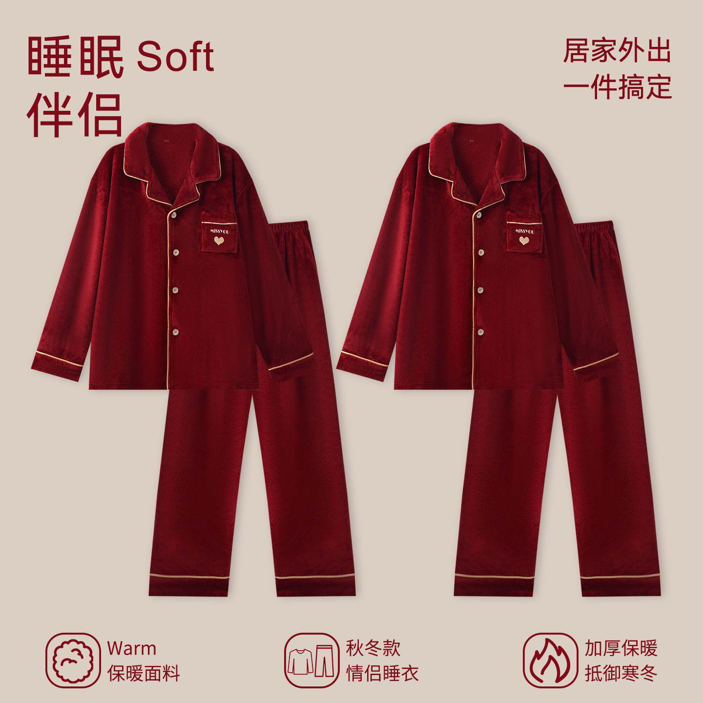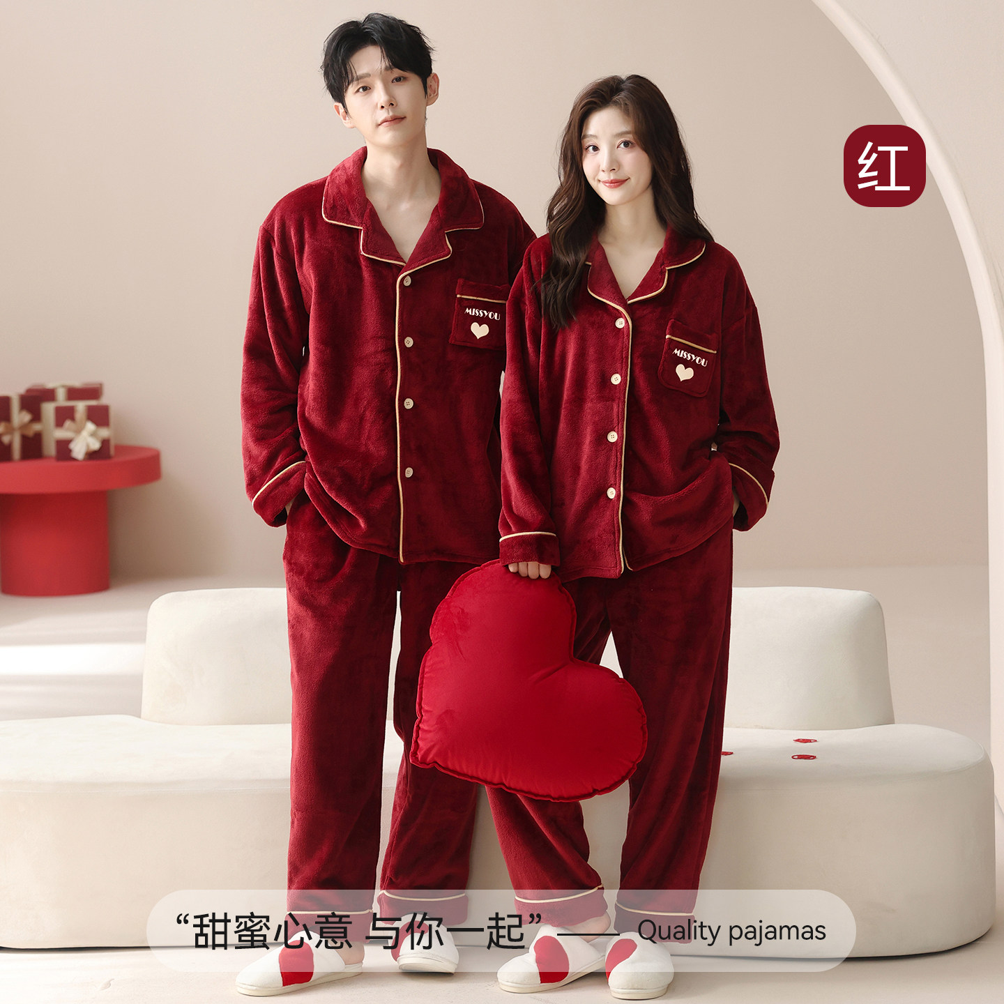 芬腾可安睡衣结婚新婚情侣套装红色冬季珊瑚绒加厚甜蜜情侣装男女