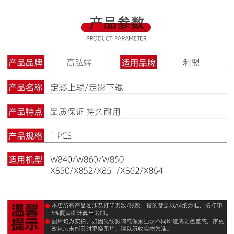 高弘端适用 利盟 W840 W860 定影上辊 加热辊 W850 X850 X852 X85
