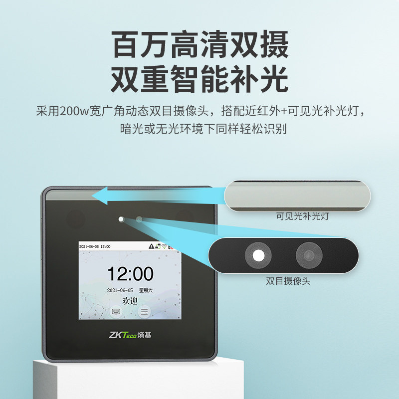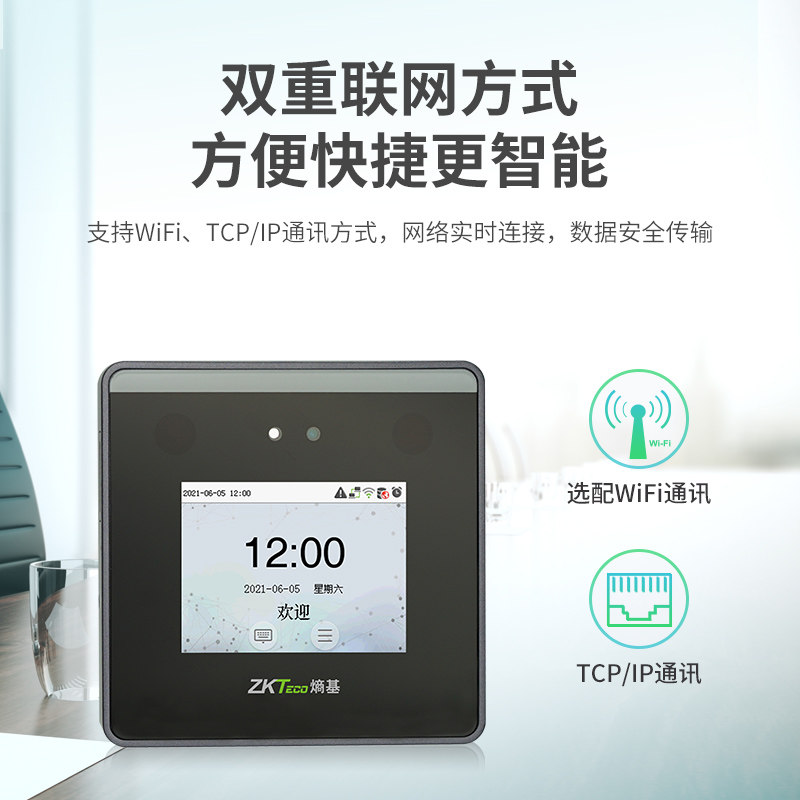 ZKTeco熵基 xFace55可见光动态人脸识别考勤机打卡机wifi通讯面部刷脸智能员工上下班签到机门禁系统一体机