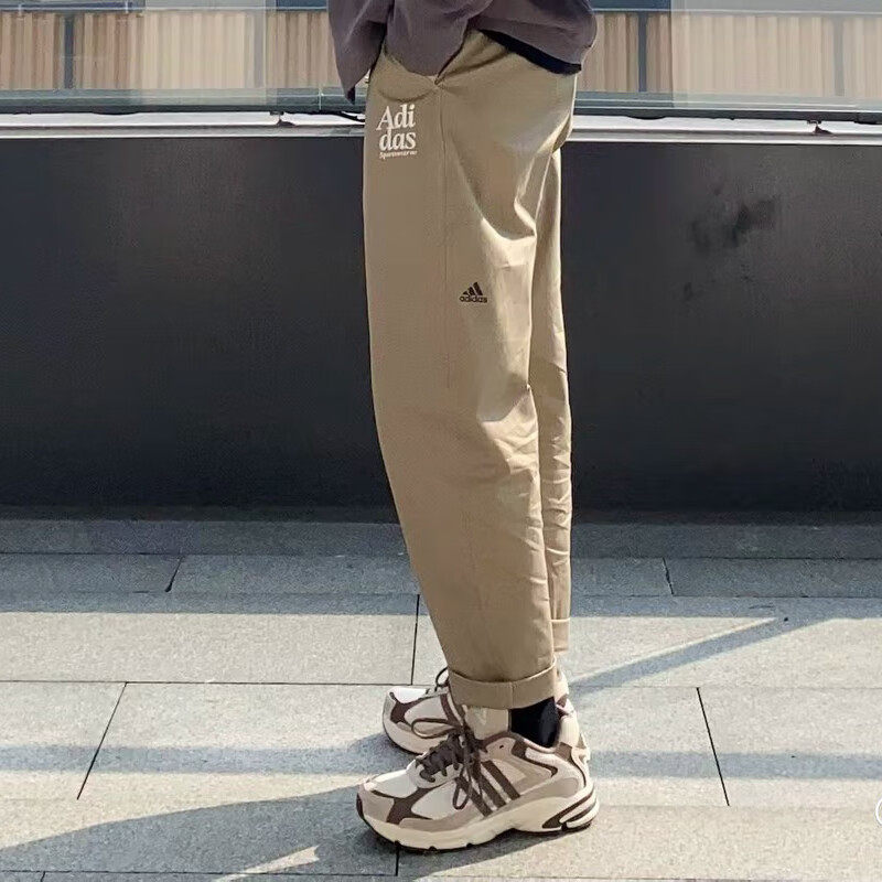 阿迪达斯卡其运动裤男裤夏季宽松透气休闲裤薄款直筒小脚长裤纯棉