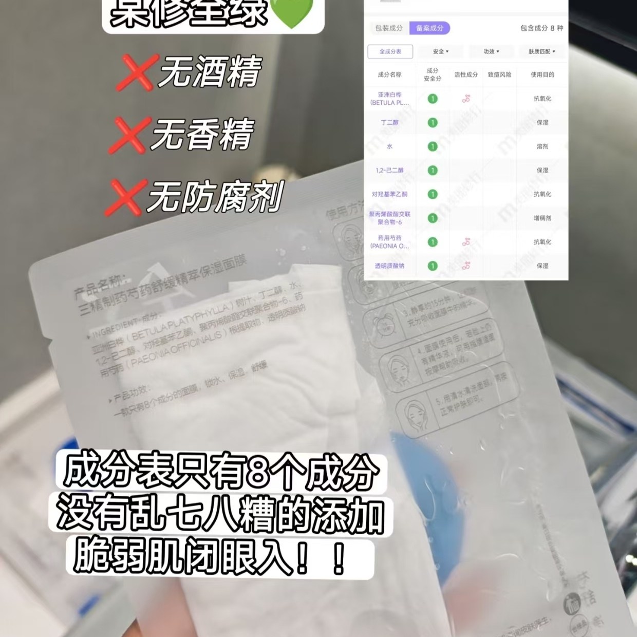 Sanchine/三精制药芍药舒缓精萃保湿面膜修复肌肤屏障强韧补水