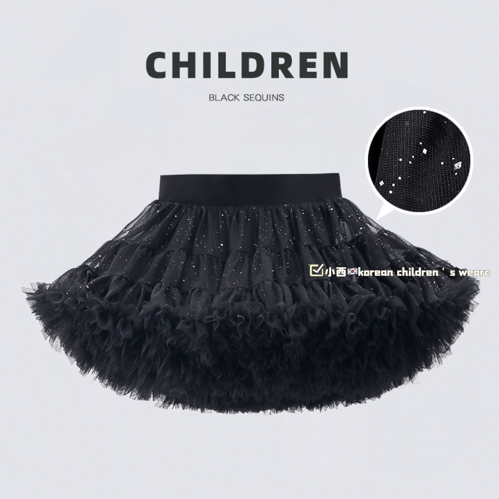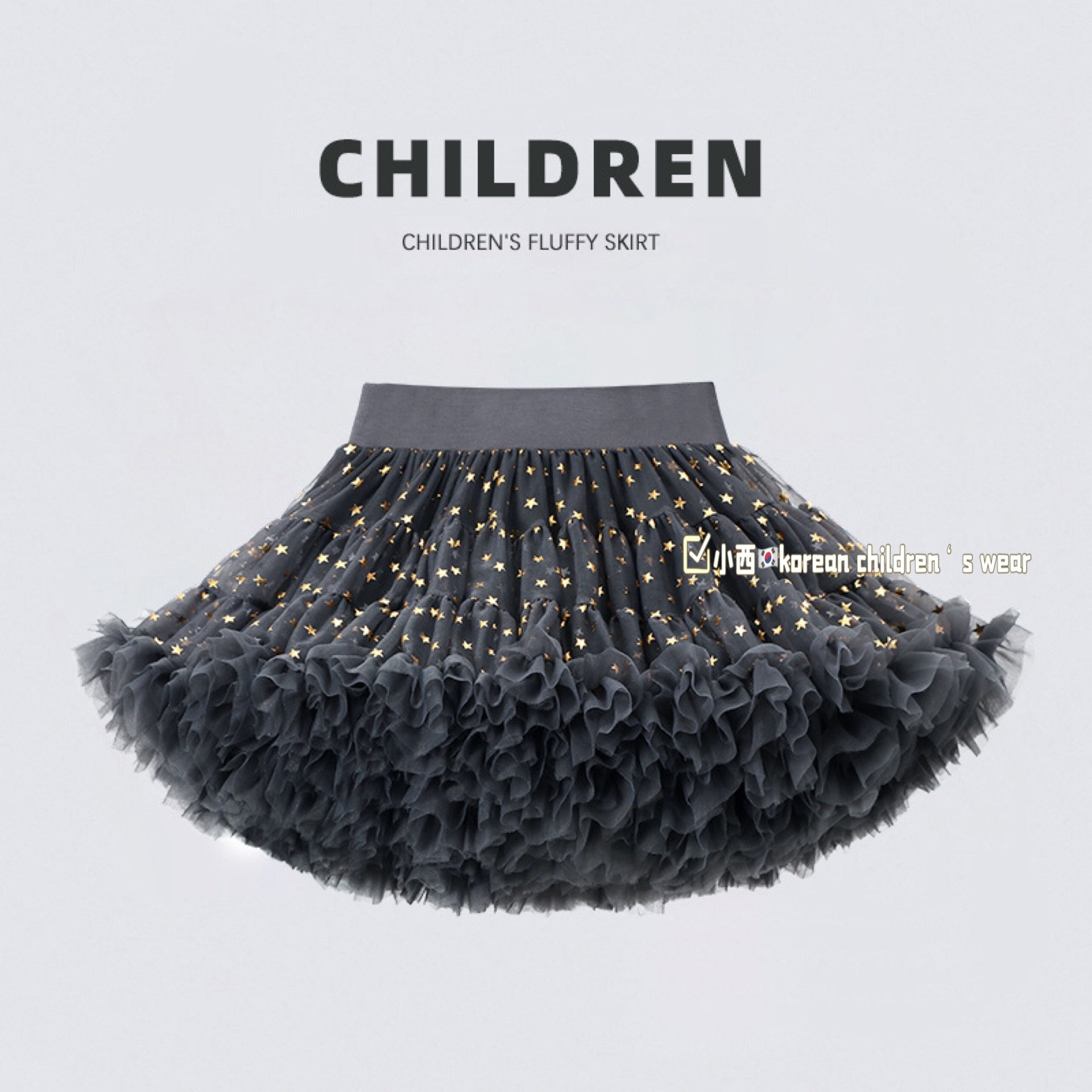 女童tutu裙秋冬限定半身蓬蓬裙女宝软网纱裙儿童黑色星空兔兔纱裙
