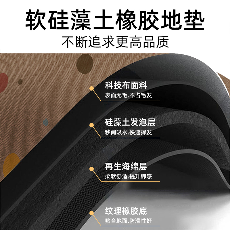 硅藻泥浴室吸水脚垫防滑地毯卫生间门垫厕所速干地垫厨房入户卫浴