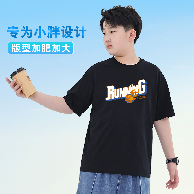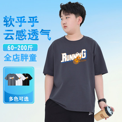 胖童短袖t恤男大童夏季男孩半袖大码儿童体恤胖童装男童加肥加大