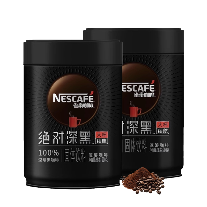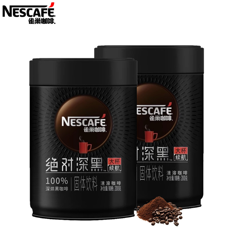 雀巢咖啡绝对深黑美式黑咖啡速溶咖啡粉200g*2罐运动健身提神正品