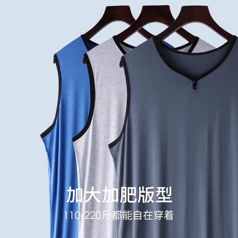男士莫代尔一体式睡裙夏冰丝背心睡衣大码宽松家居服睡袍长款浴袍