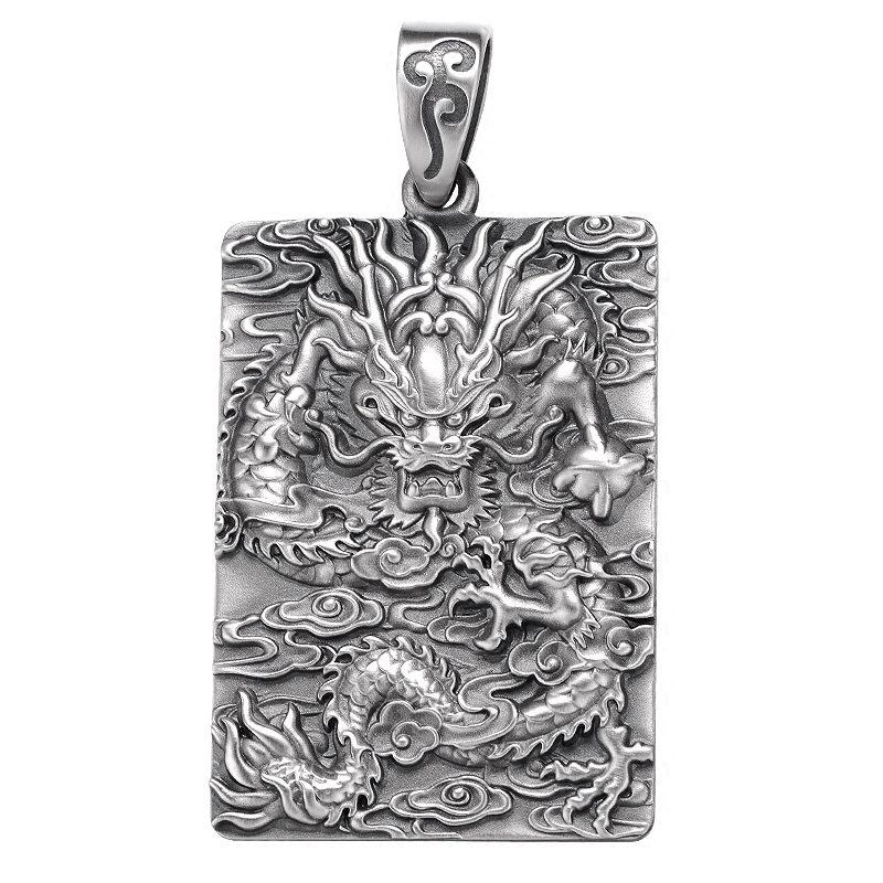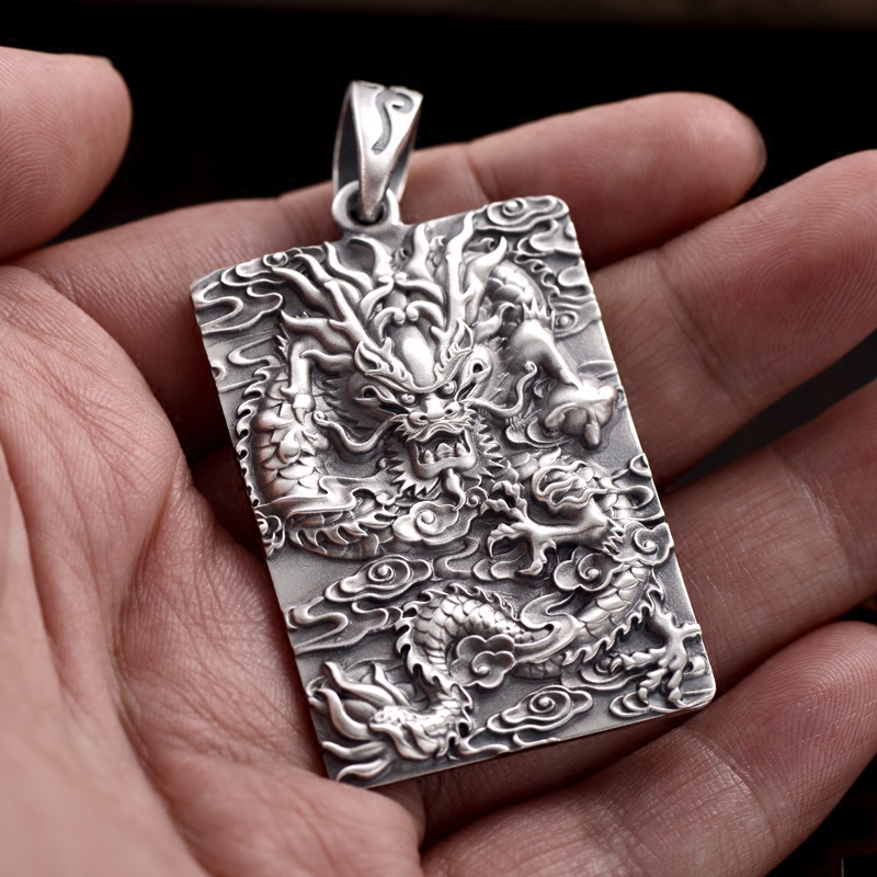 上尊男饰 龙牌 龙吊坠 男 999足银 泰银项链 霸气饰品 新年护身符