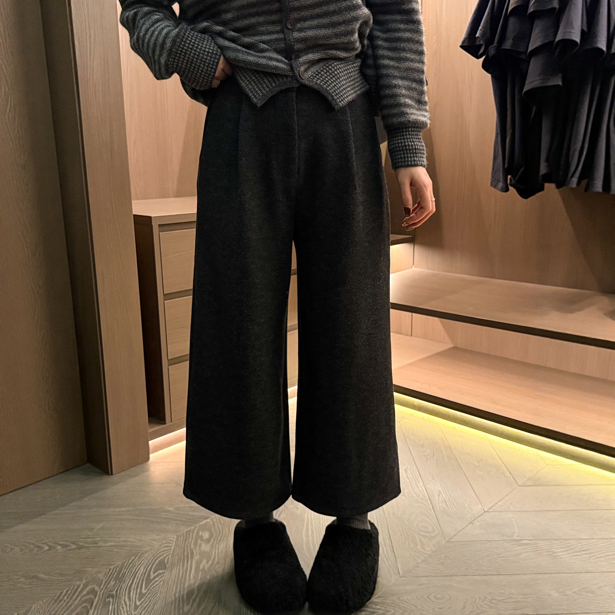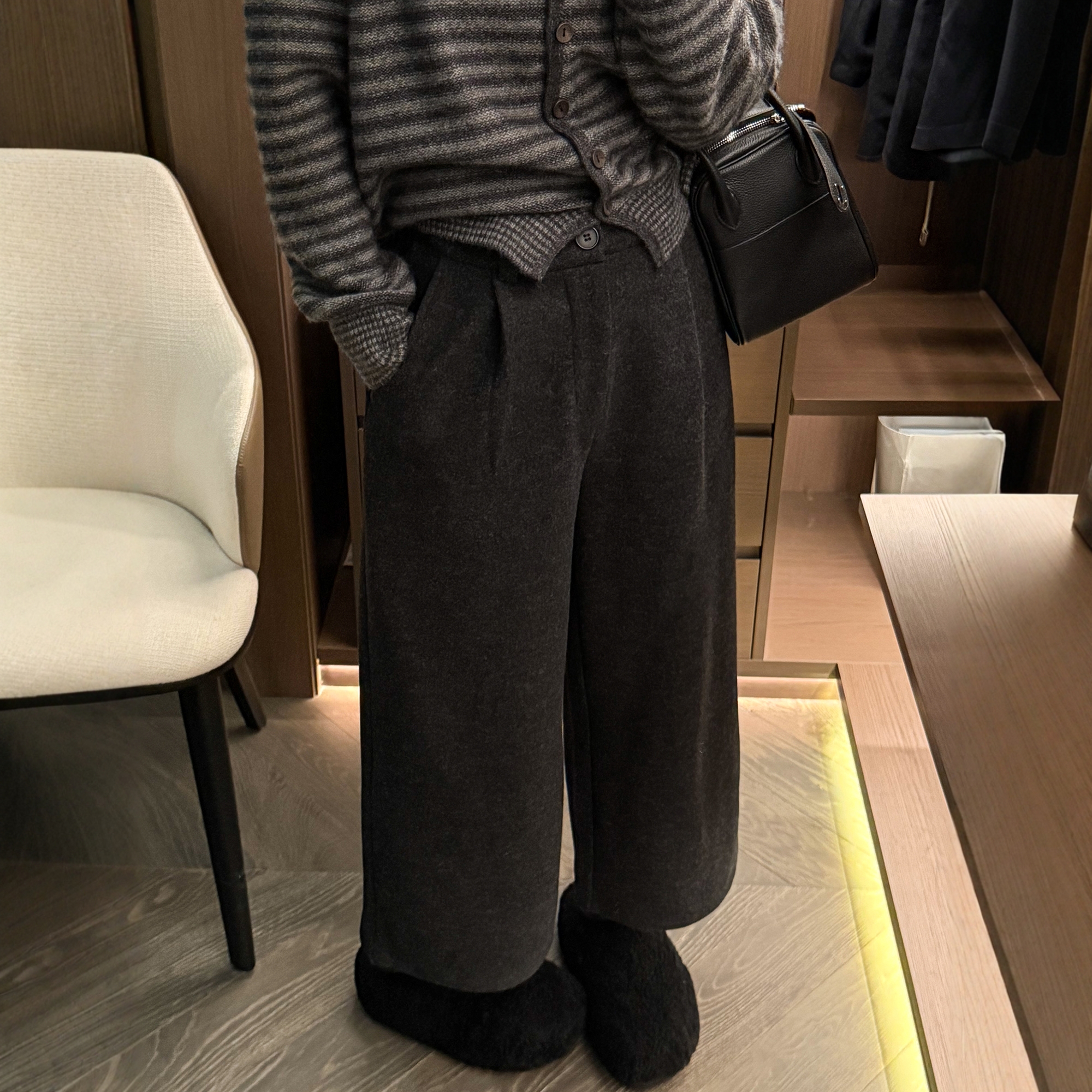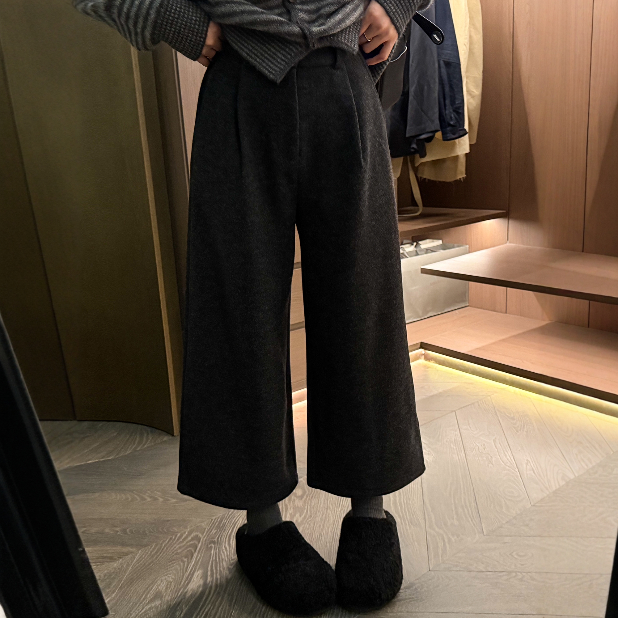 羊毛呢加绒西装阔腿裤女欧洲站2025冬装新款欧货女装九分休闲裤潮