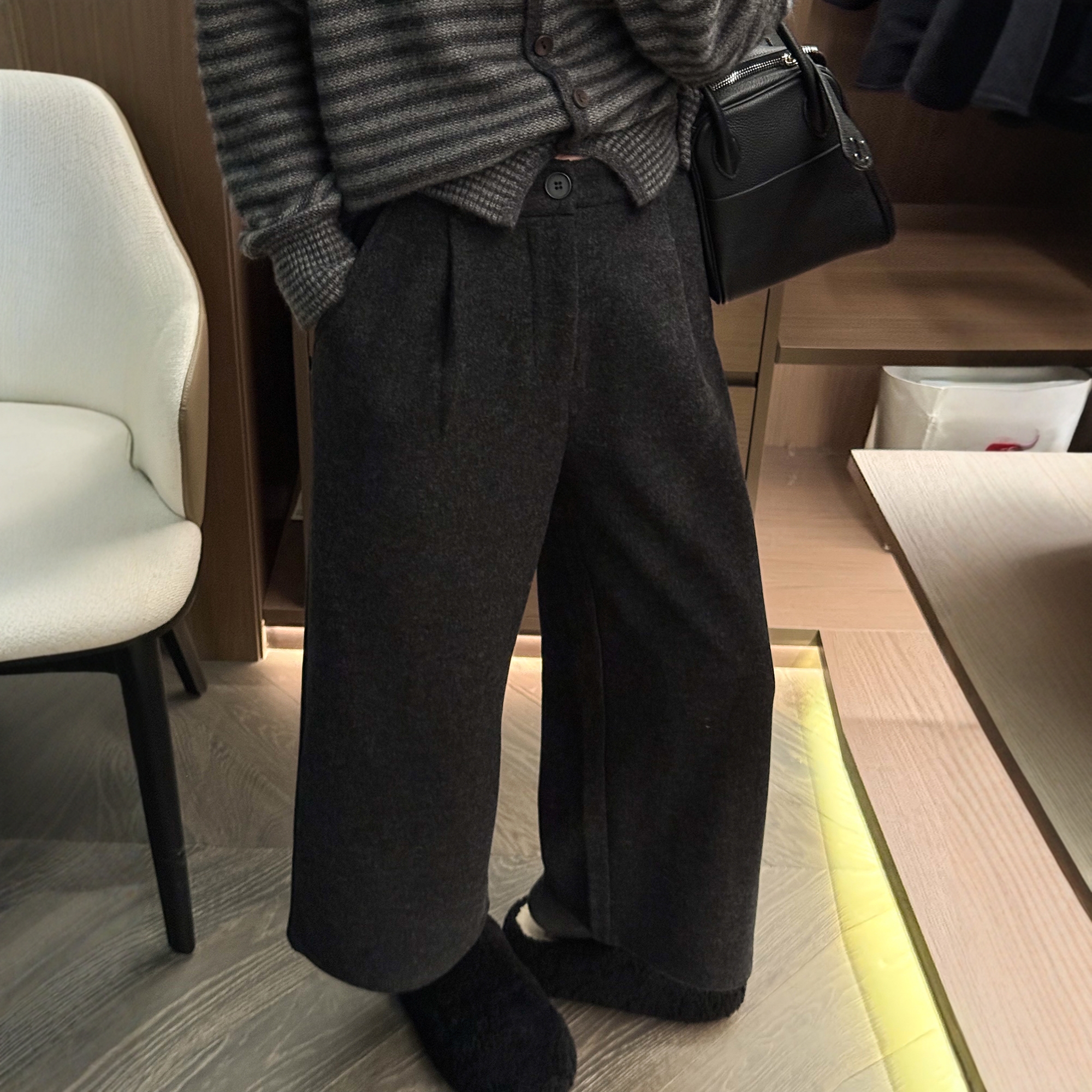 羊毛呢加绒西装阔腿裤女欧货裤子