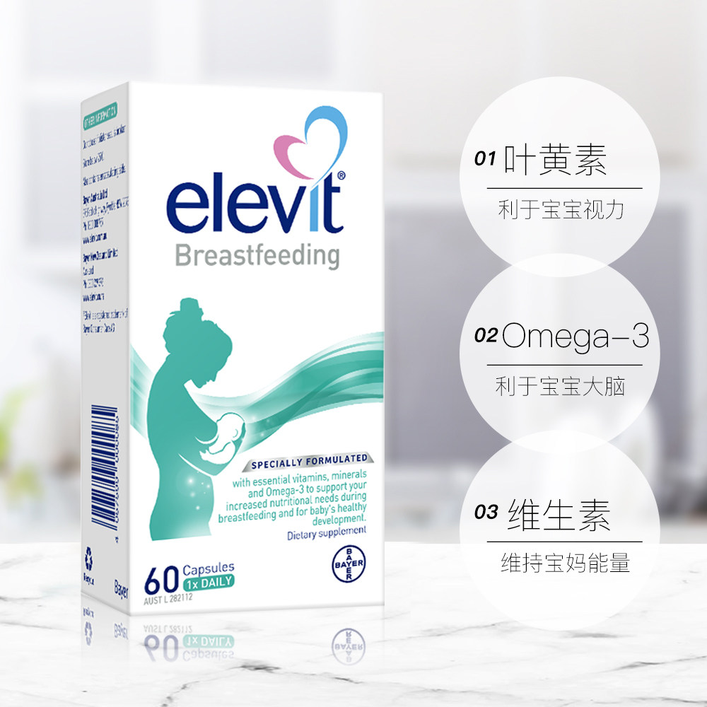 【自营】Elevit澳洲爱乐维哺乳期黄金素叶黄素孕妇维生素60粒*2盒