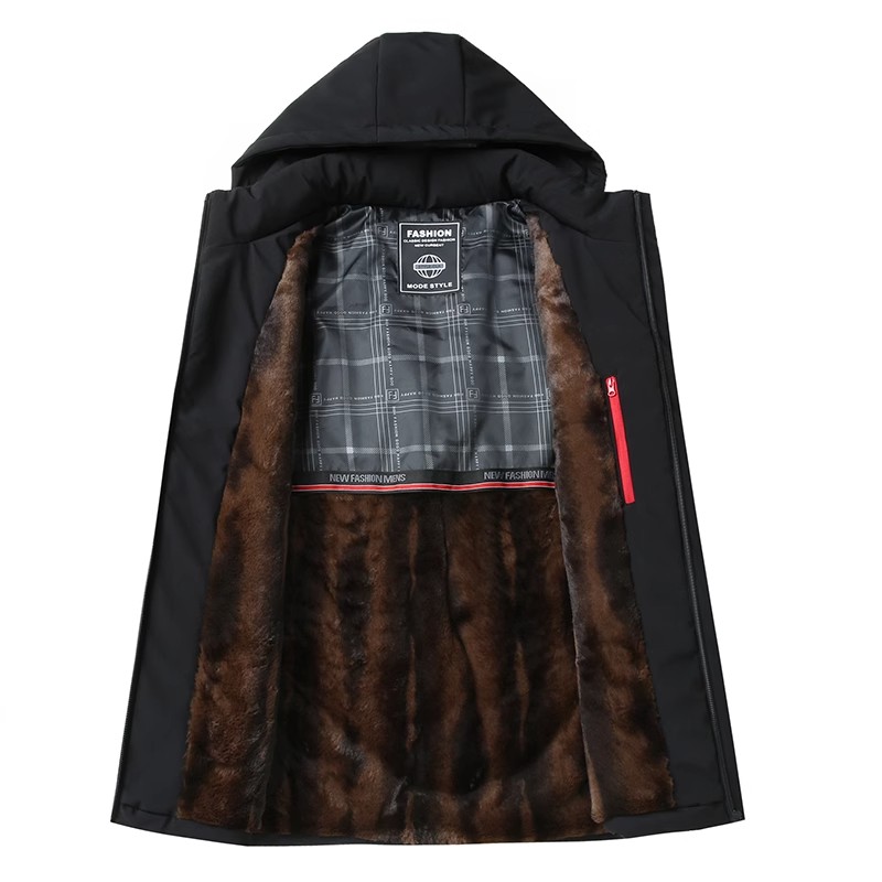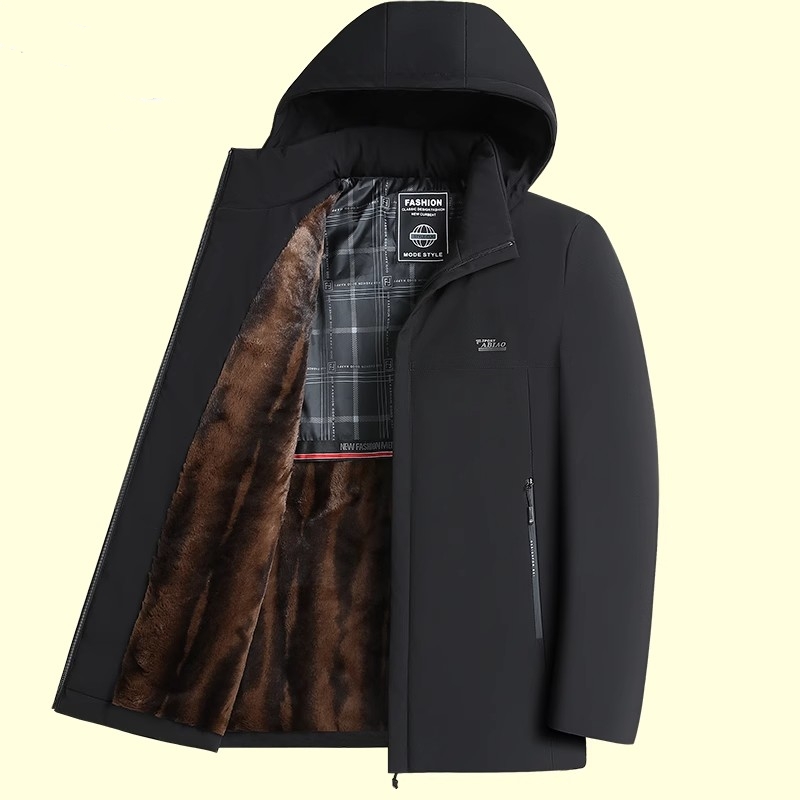 冬季男士加绒加厚宽松棉衣爸爸装连帽外套休闲棉服中老年人派克服