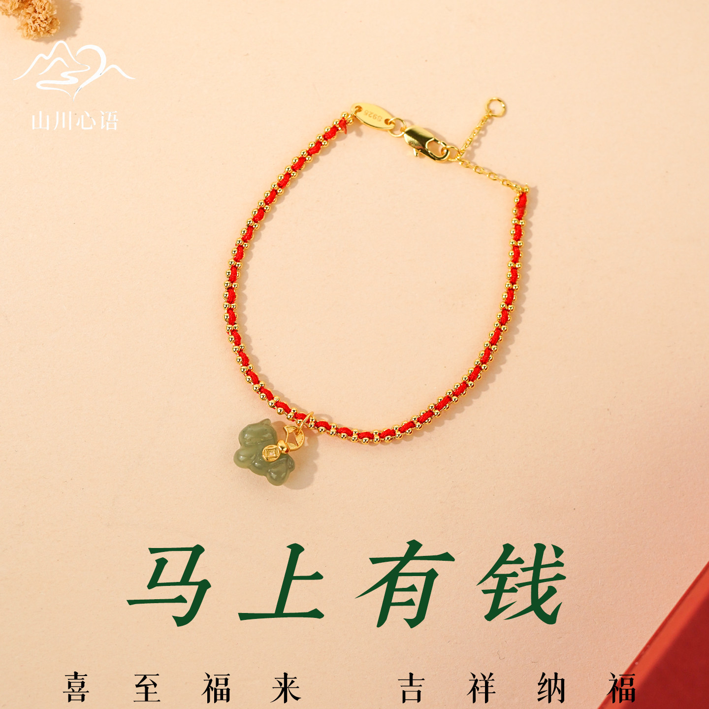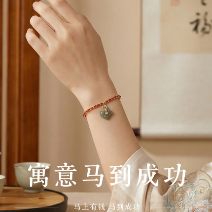 马年红色手链马到成功小马手串天然和田玉绿色宝石女款高端礼物