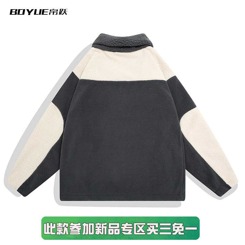 BOYUE帛跃港风宽松休闲痞帅拼色羊羔绒外套男秋冬季保暖加厚棉衣