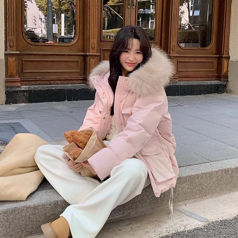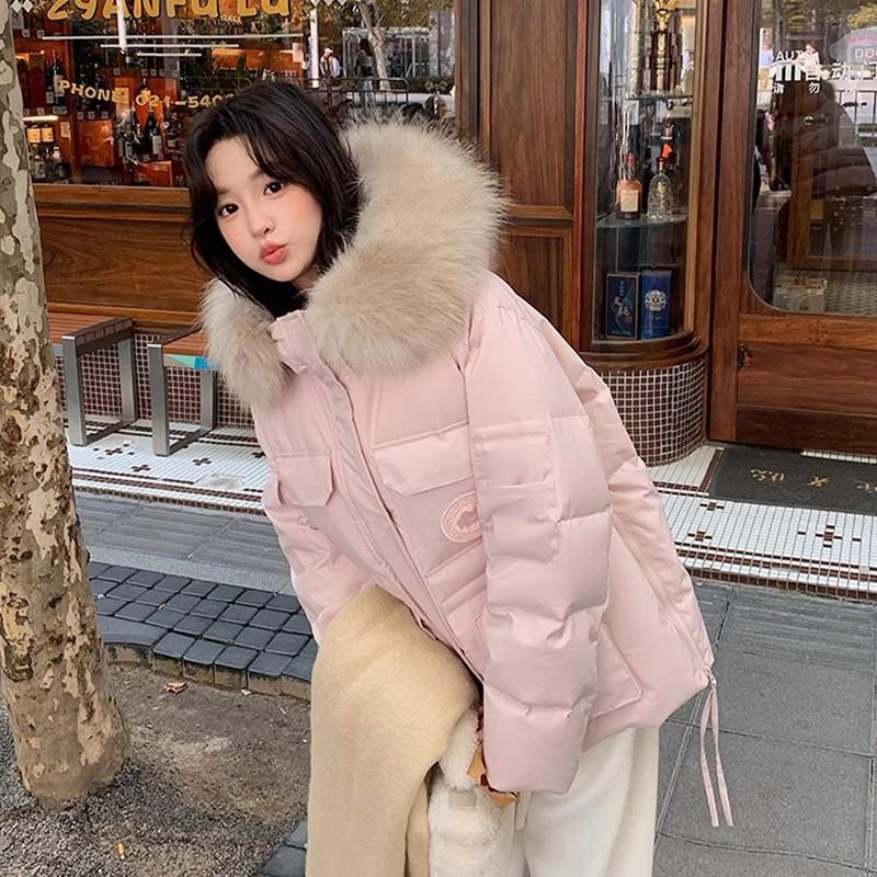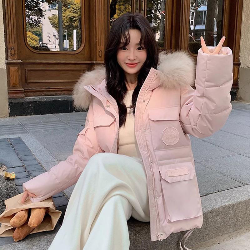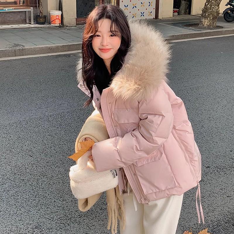 大码女装粉色工装派克羽绒棉服女胖mm学院风超好看面包服加厚外套