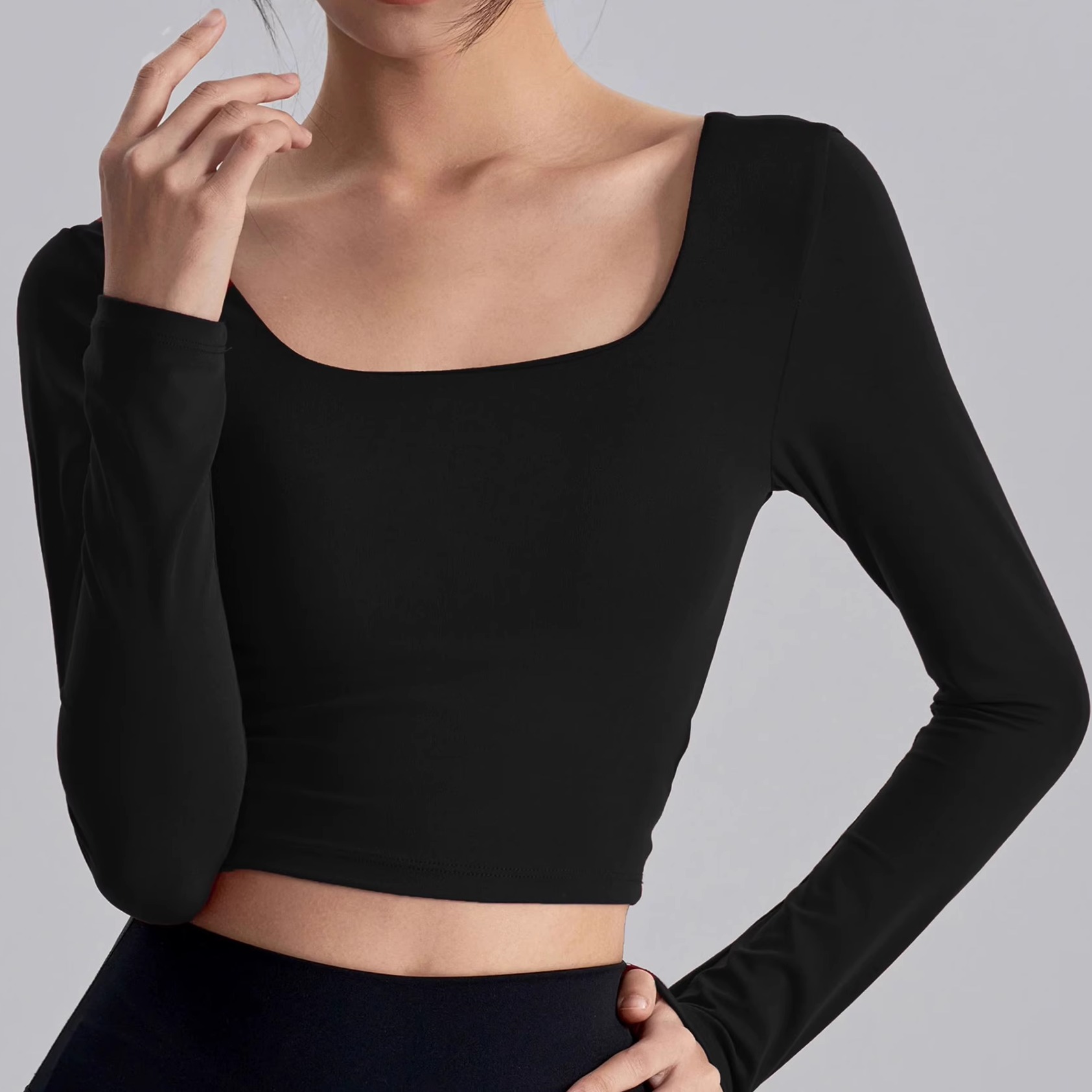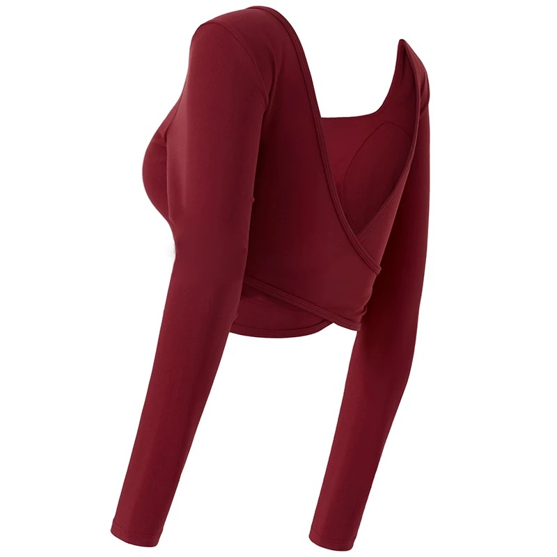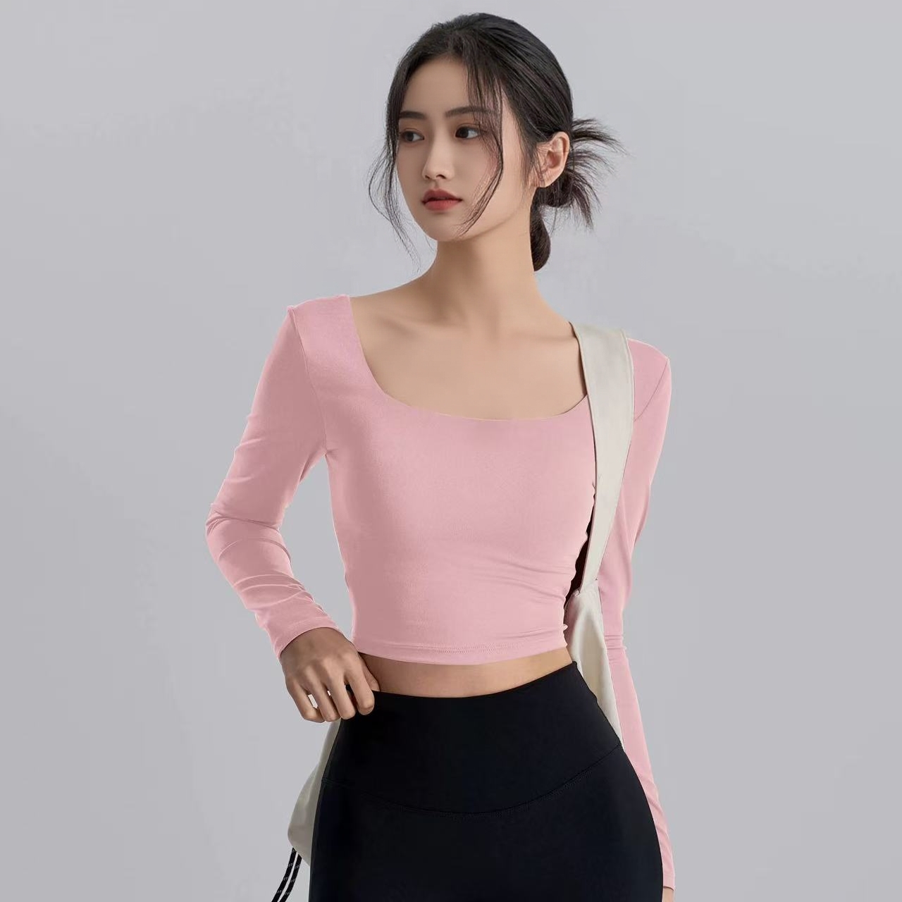 新款美背瑜伽长袖带胸垫显瘦健身上衣外穿专业普拉提训练服透气