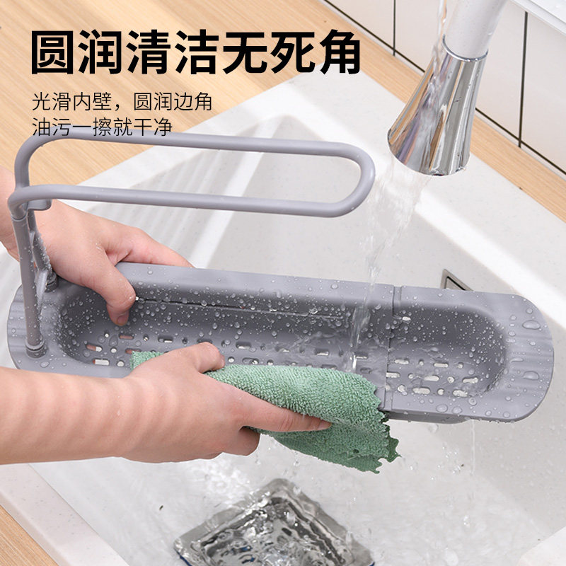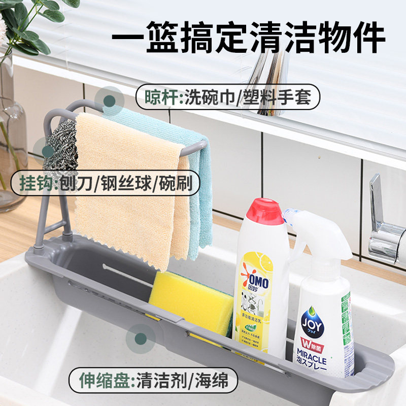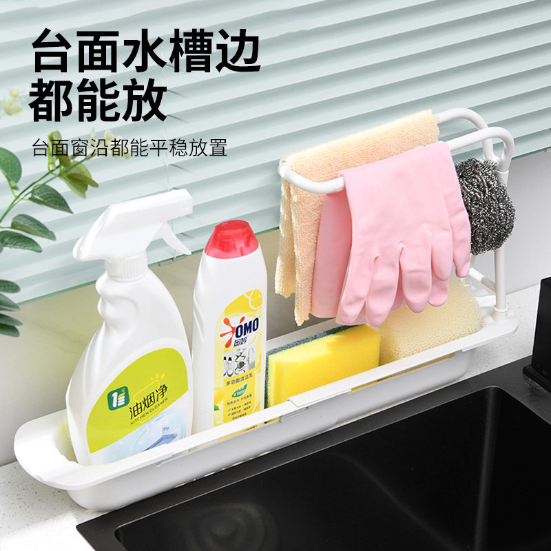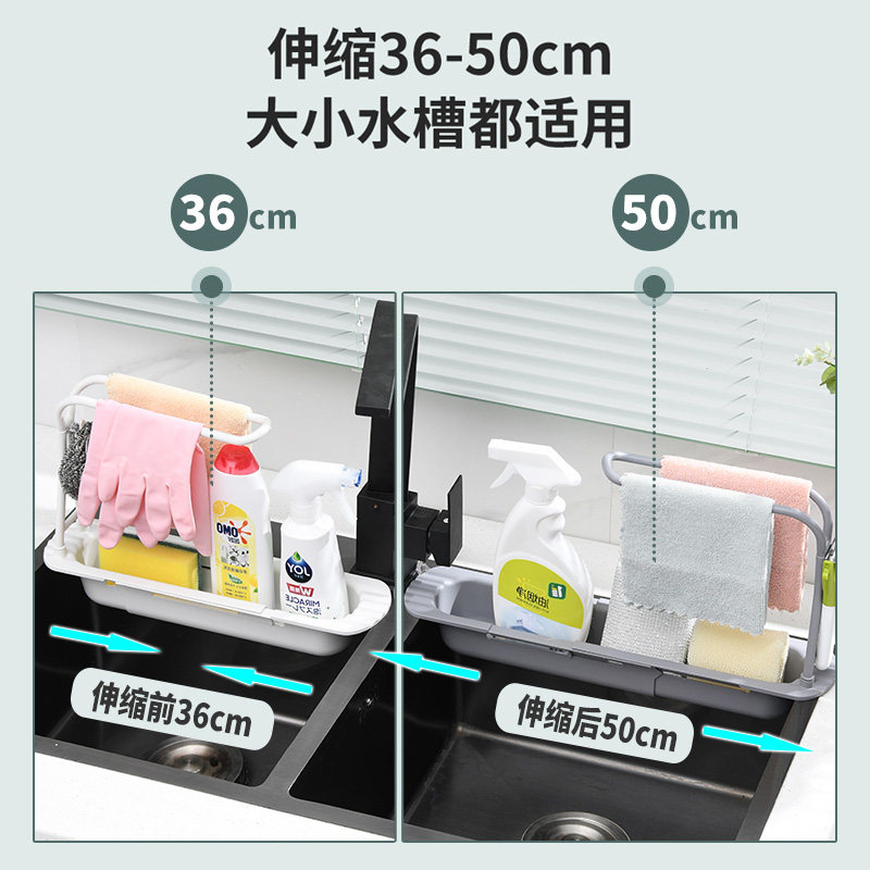 兴起伸缩沥水架水槽置物架水池免打孔洗碗抹布架篮厨房海绵收纳架