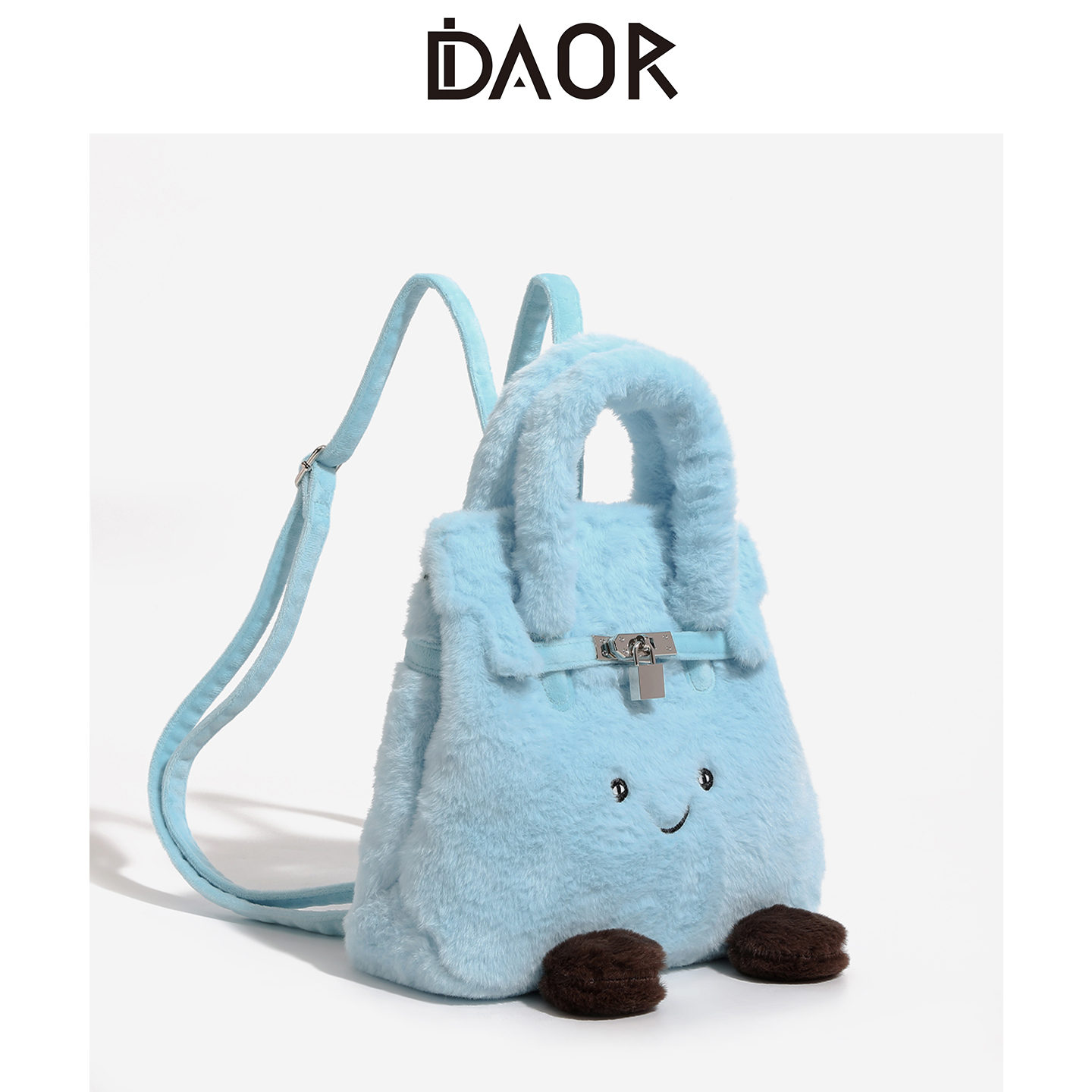 DAOR原创设计可爱卡通毛绒凯莉双肩包女秋冬百搭毛毛包大容量背包