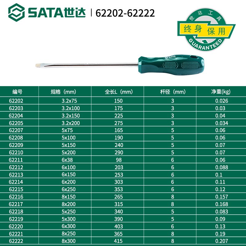 世达工具一字螺丝刀62202 62203 62204 62205 62207 62208 62309