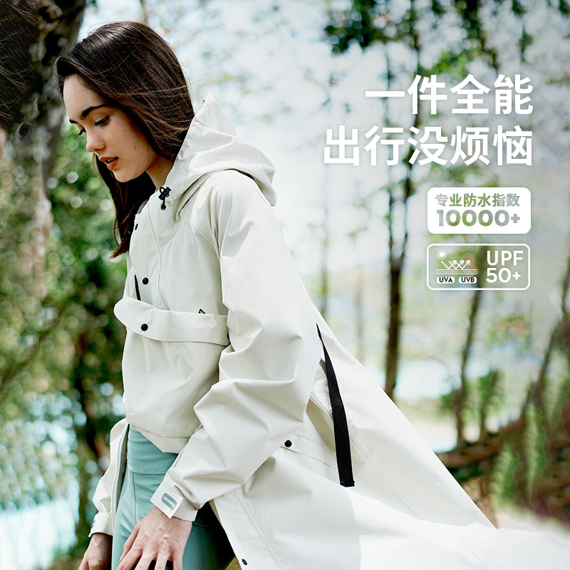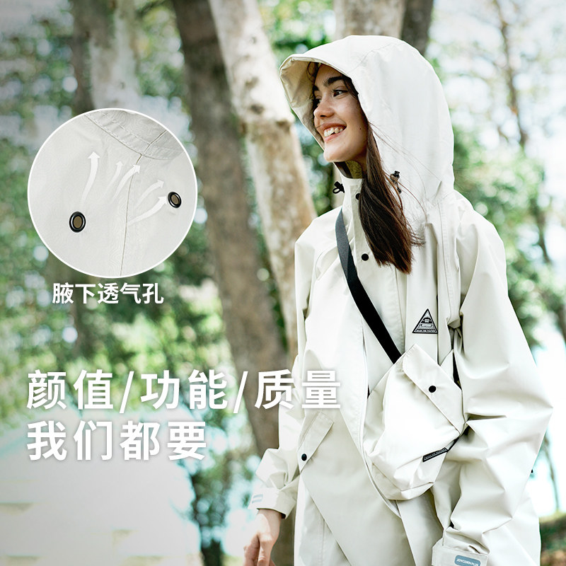 Joycorn加可雨衣女风衣中长款防雨服 透气户外徒步电动车雨披白色