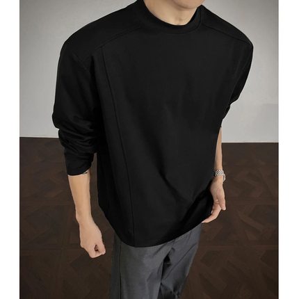 重磅纯棉360G小领口解构长袖t恤打底衫男款春秋美式复古宽松上衣