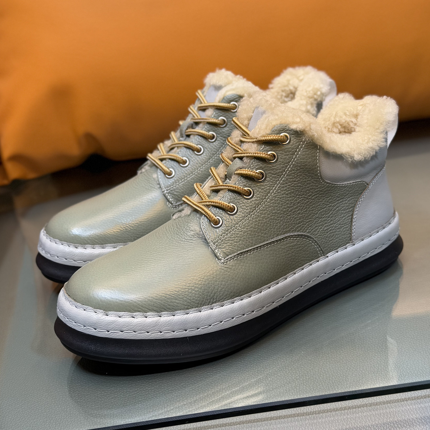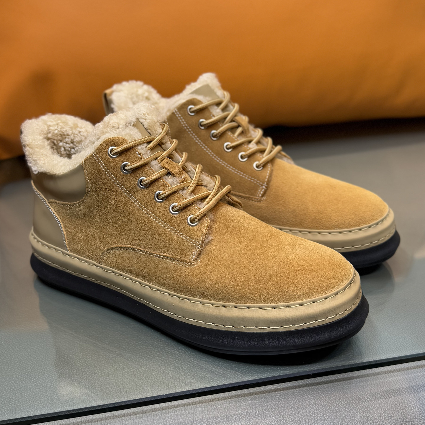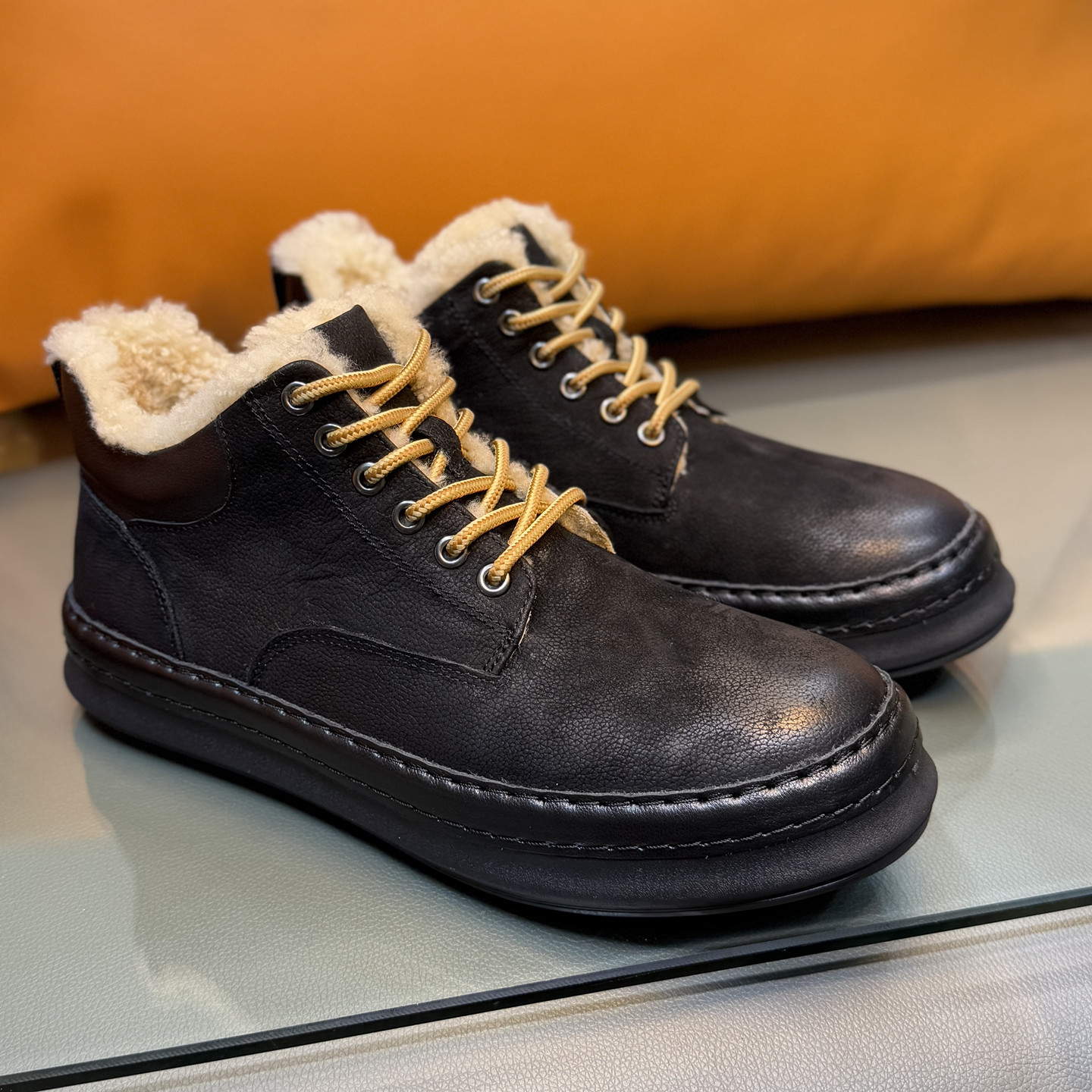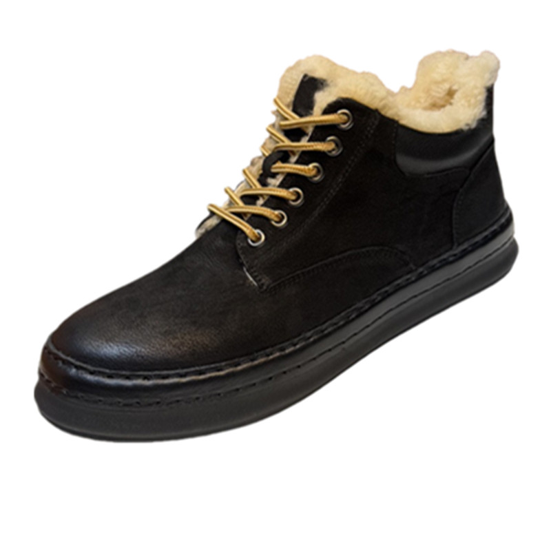冬季保暖真皮羊皮毛一体雪地靴男复古潮流男士高帮板鞋羊毛马丁靴