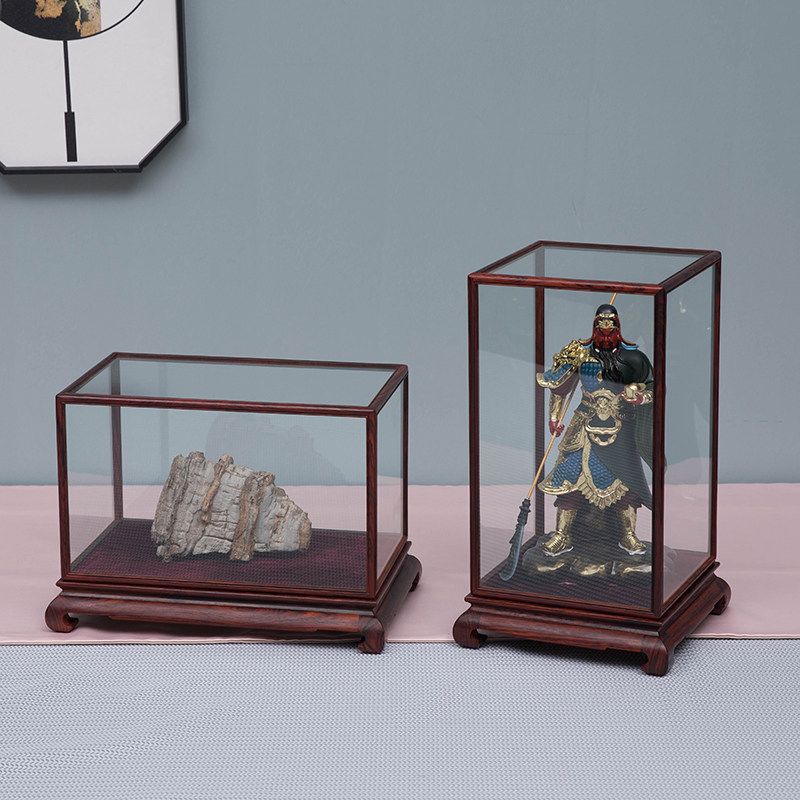 红木摆件玻璃罩花瓶古董文玩佛像工艺品红酸枝展示盒防尘罩子定制