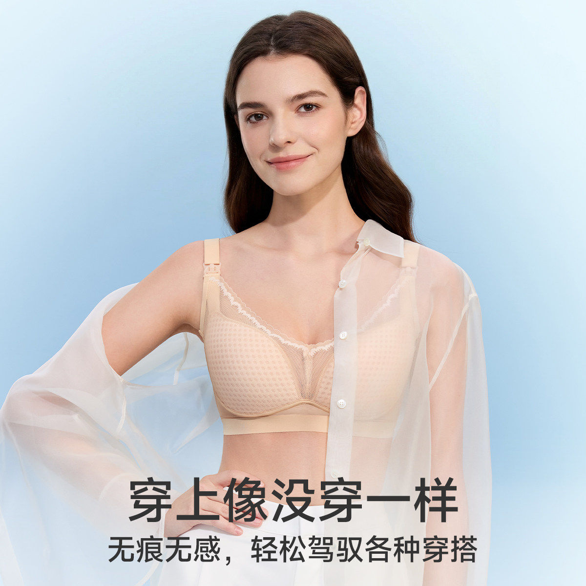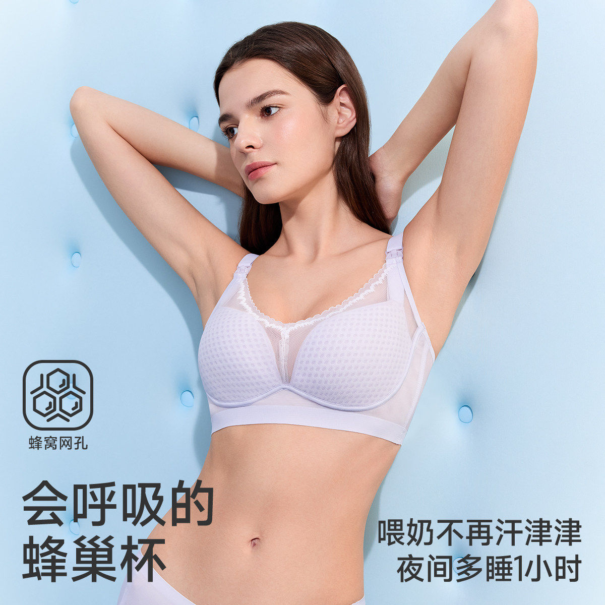 【蜂巢杯2.0】婧麒夏季超薄哺乳内衣怀孕喂奶防下垂聚拢孕妇文胸