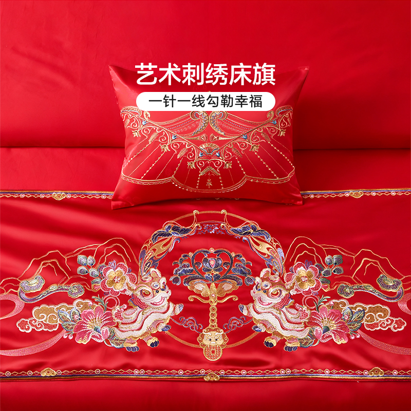富安娜结婚四件套婚庆床上用品红色喜庆八件套床旗婚嫁床单被套