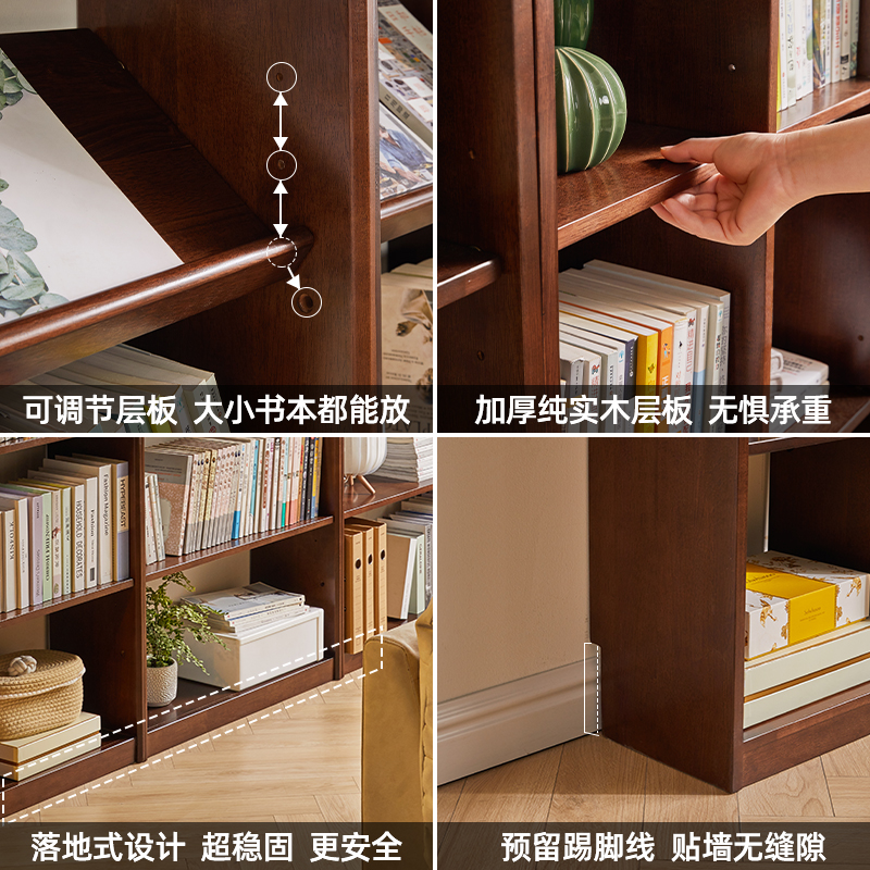 实木书架一体靠墙落地书柜置物架客厅自由组合展示架家用储物柜子