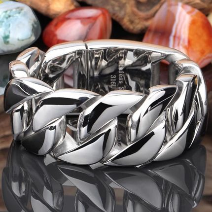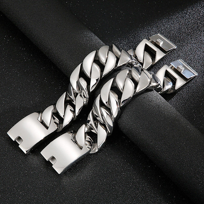 宽版简约霸气粗款朋克钛钢手链时尚首饰欧美个性光面潮男士饰品