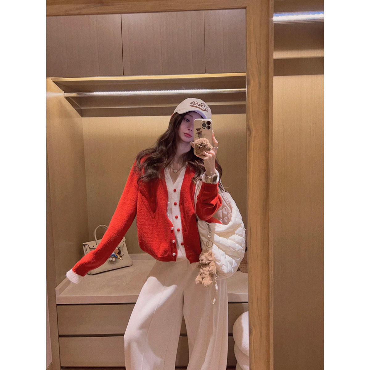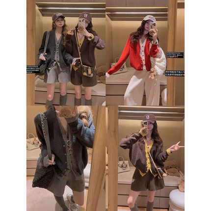 Yukiss 博主风撞色假两件针织开衫毛衣女冬韩系宽松显瘦保暖上衣