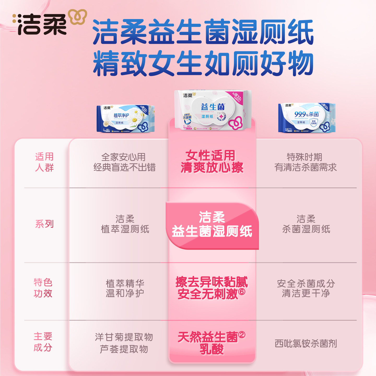洁柔湿厕纸便携湿巾袋装益生菌有效杀菌亲肤不脏手不堵厕所顺手买
