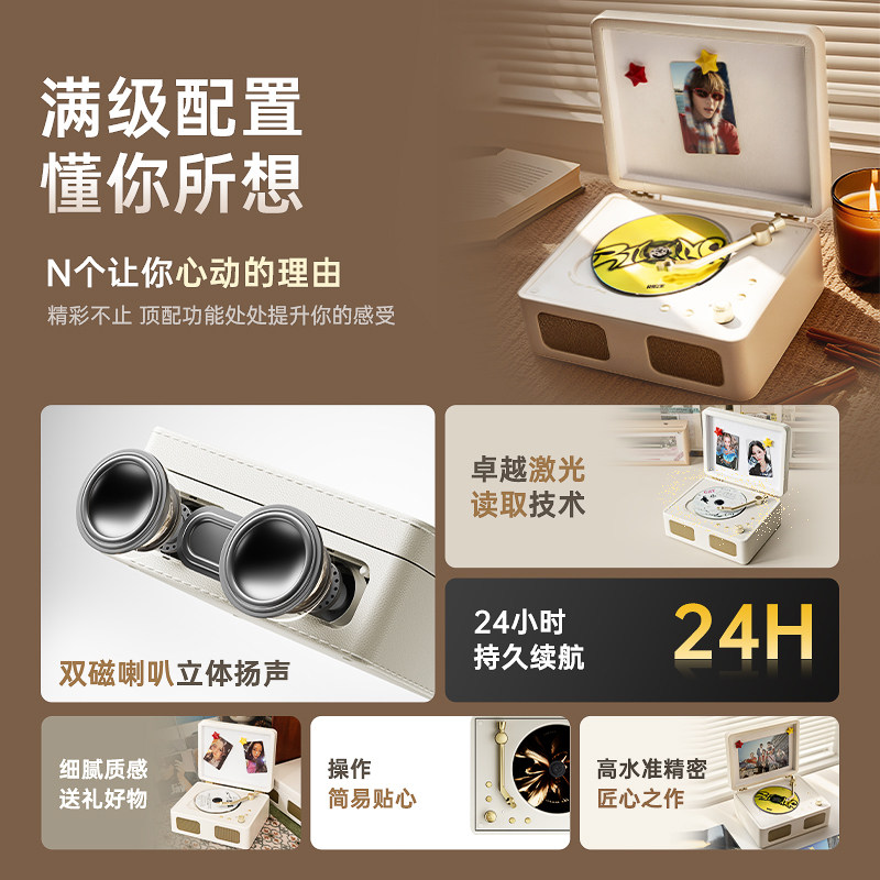 iKF CD2复古高端cd机唱片机便携式播放器专辑光盘碟蓝牙音响礼物