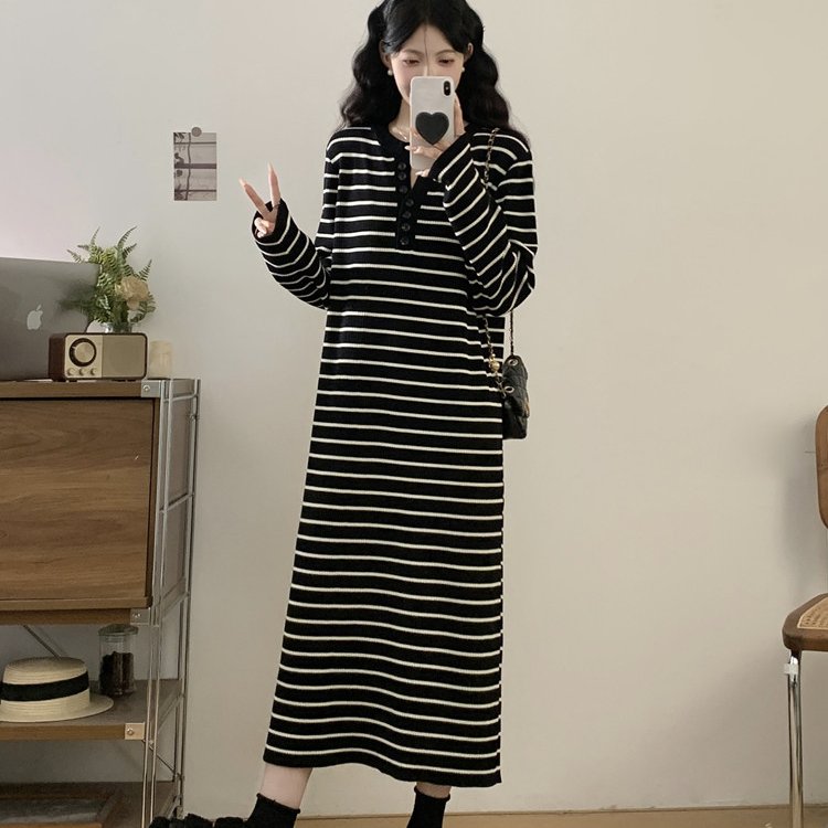 实拍大码女装秋冬针织连衣裙胖MM气质百搭显瘦遮肚打底毛衣长裙