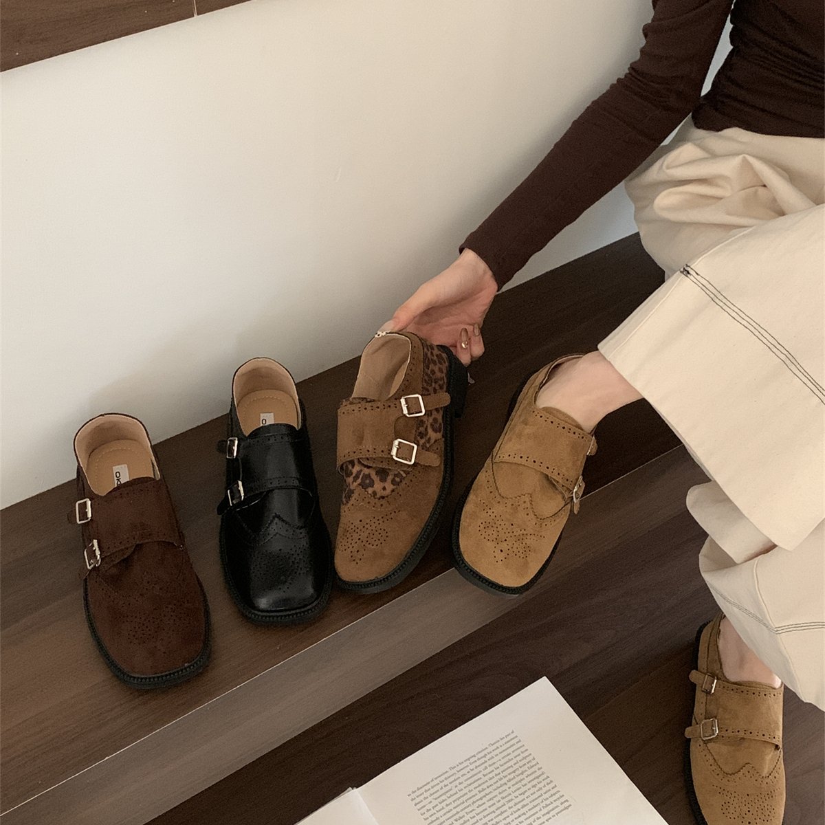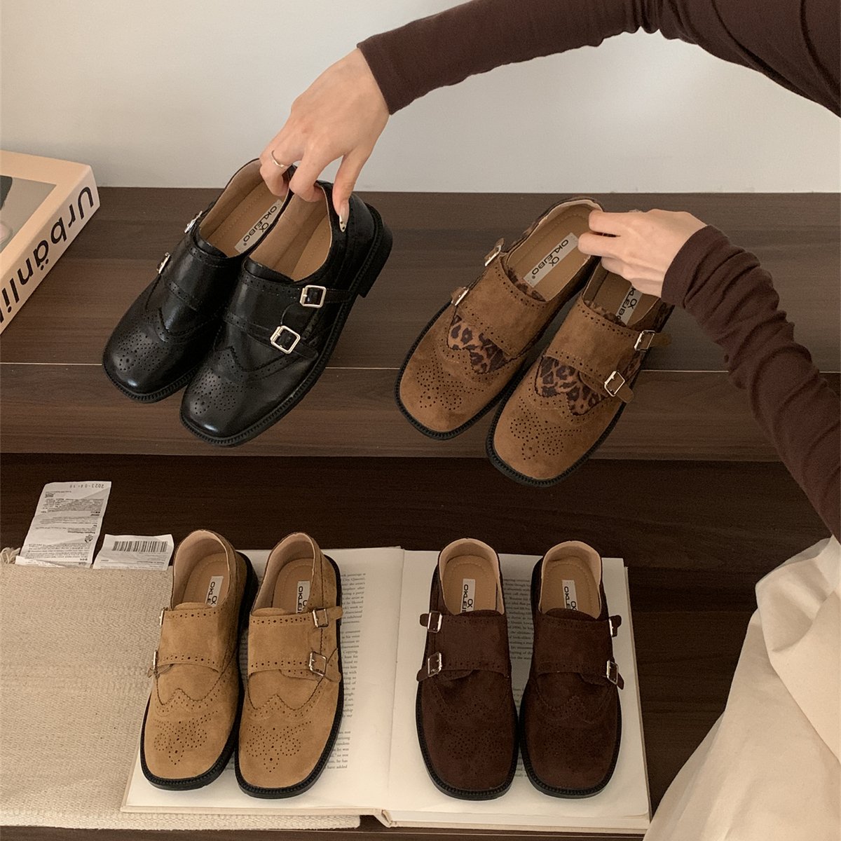 2025秋款潮酷复古英伦风布洛克小皮鞋豹纹拼接粗跟玛丽珍鞋女单鞋