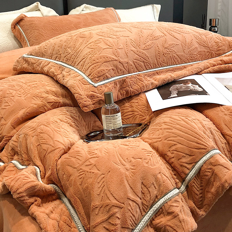 高端牛奶绒四件套浮雕绒加厚柔软秋冬双面法兰绒床单被套床上用品