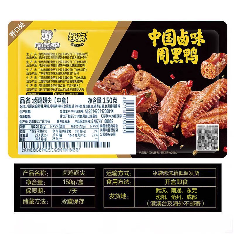 【周黑鸭旗舰店_锁鲜】气调盒装鸡翅尖150g 武汉特产零食小吃熟食