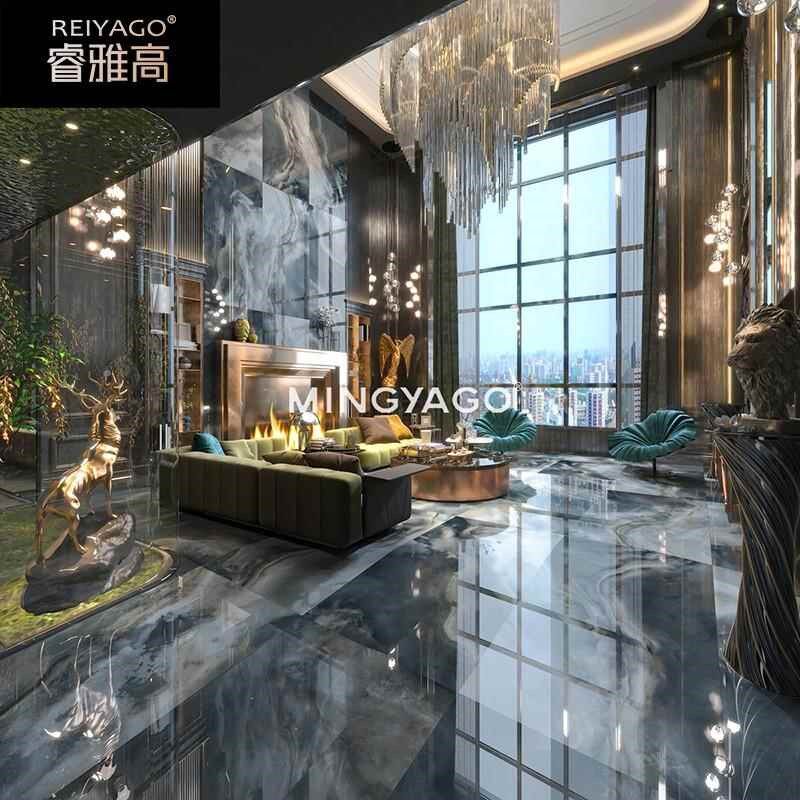 黑雀玉奢石岩板大理石地砖别墅客厅电视背景墙瓷砖900x1800陶大板