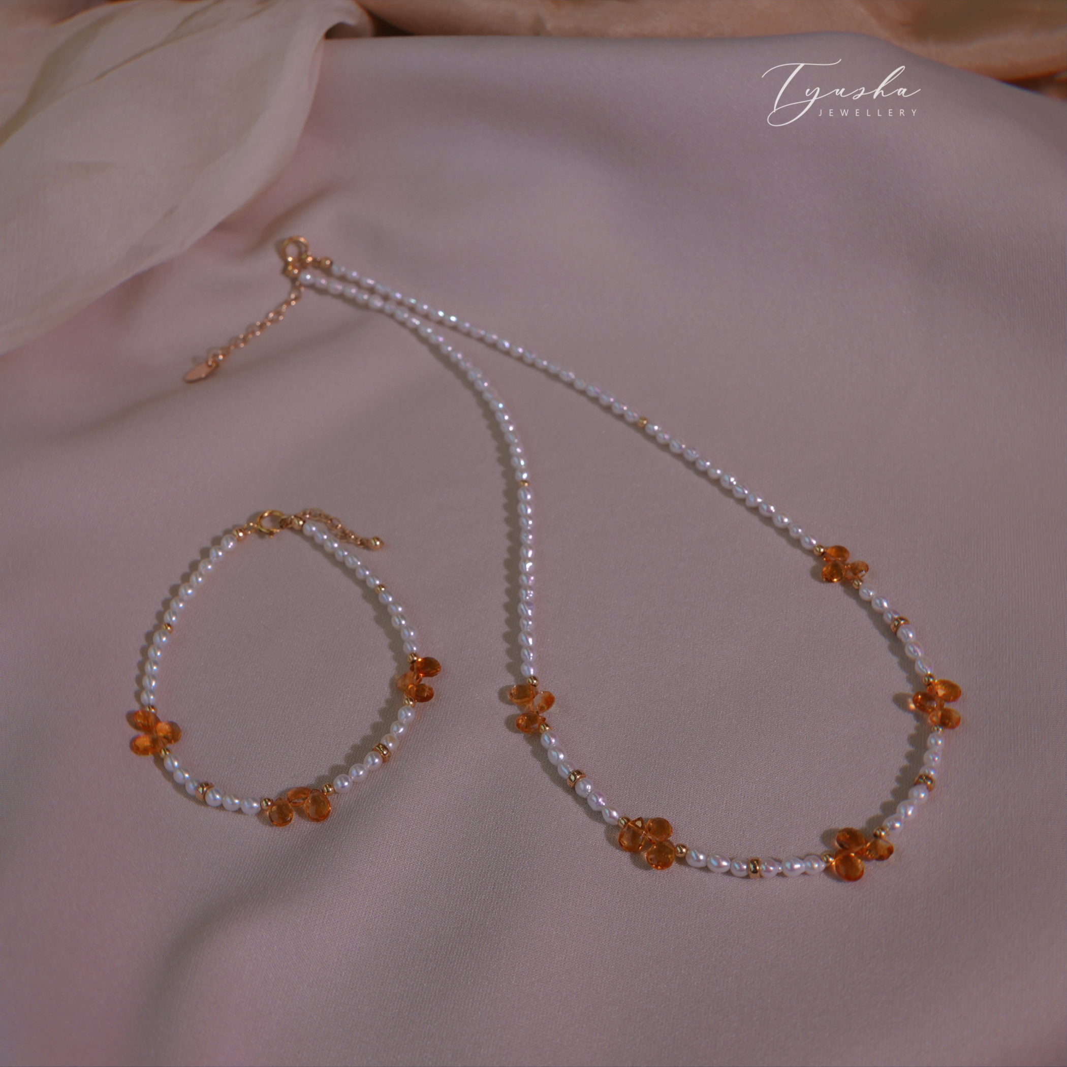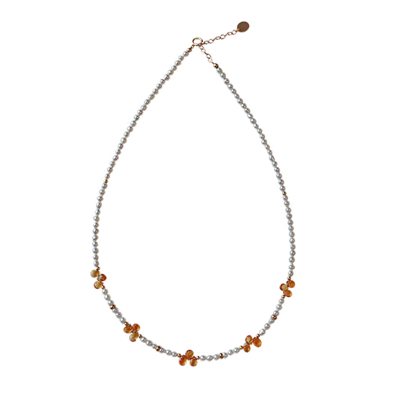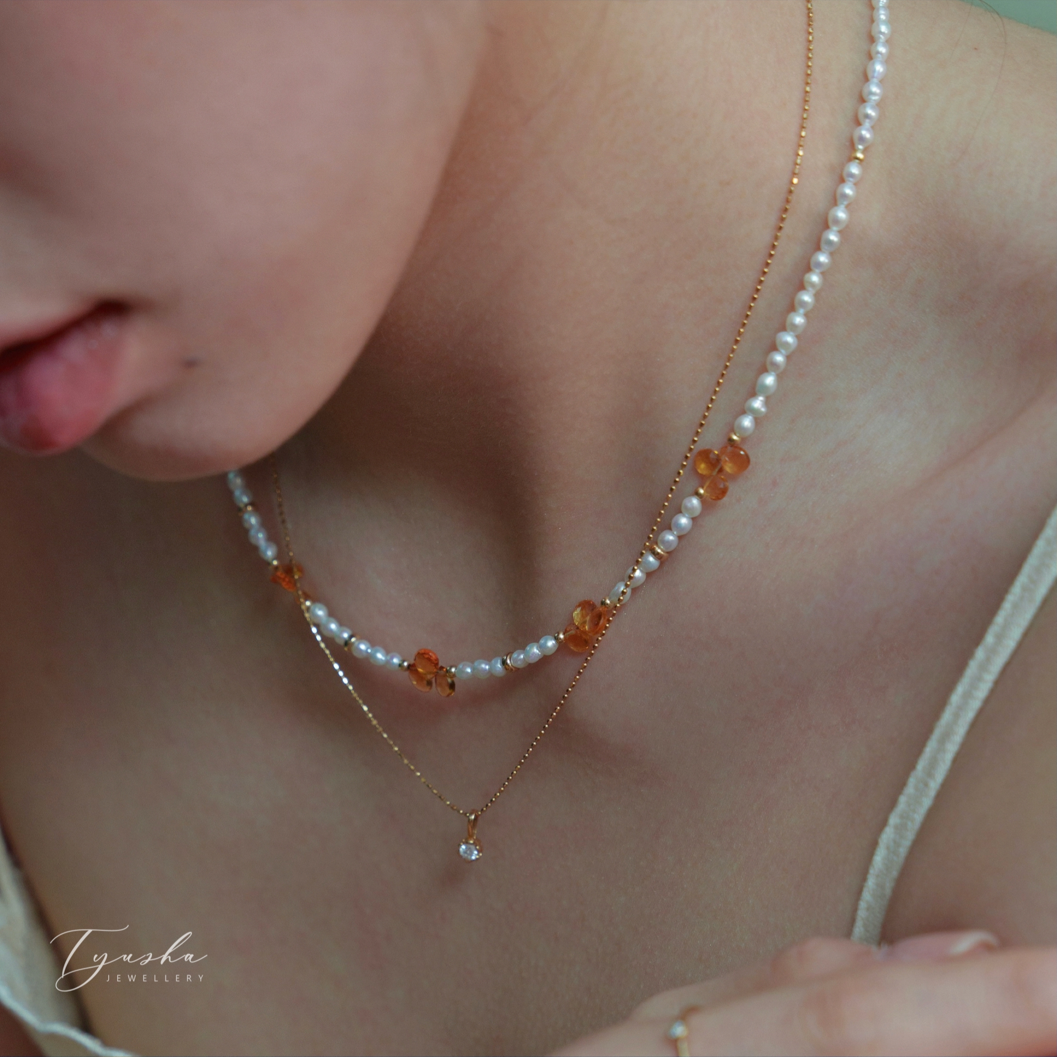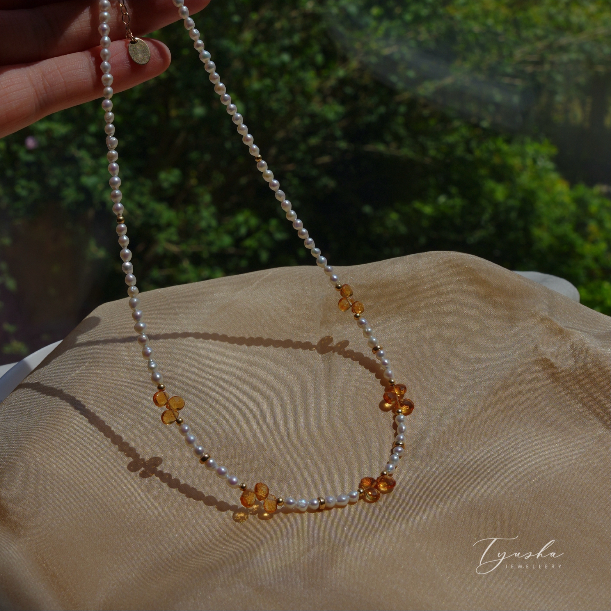 TYUSHA2025新款小黄花珍珠黄水晶项链小众轻奢叠戴饰品毛衣链女
