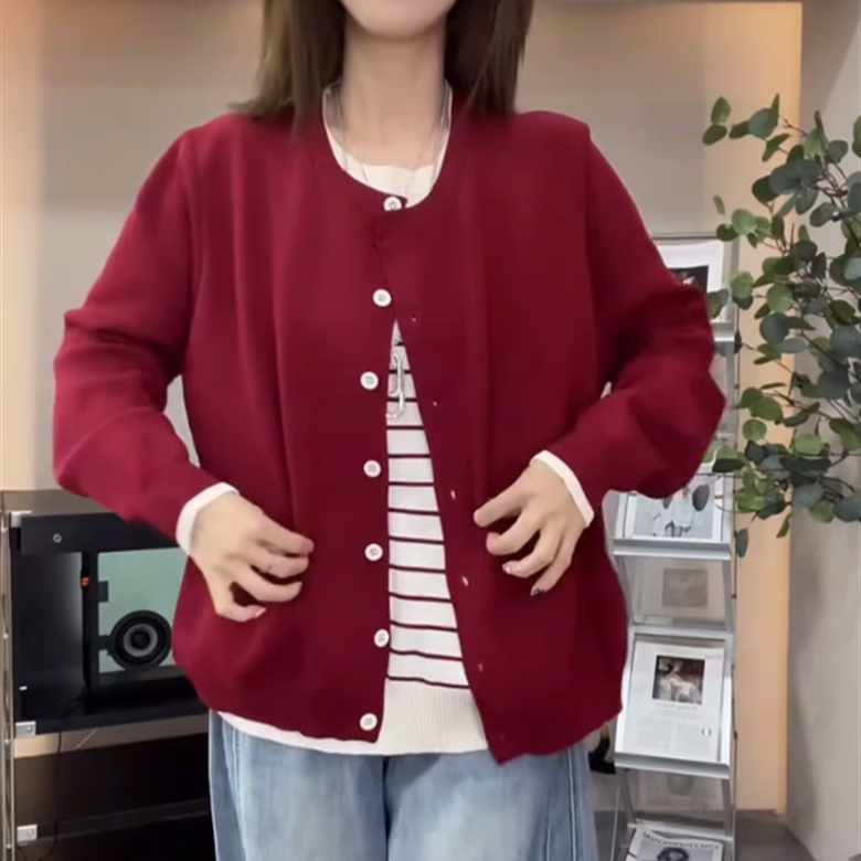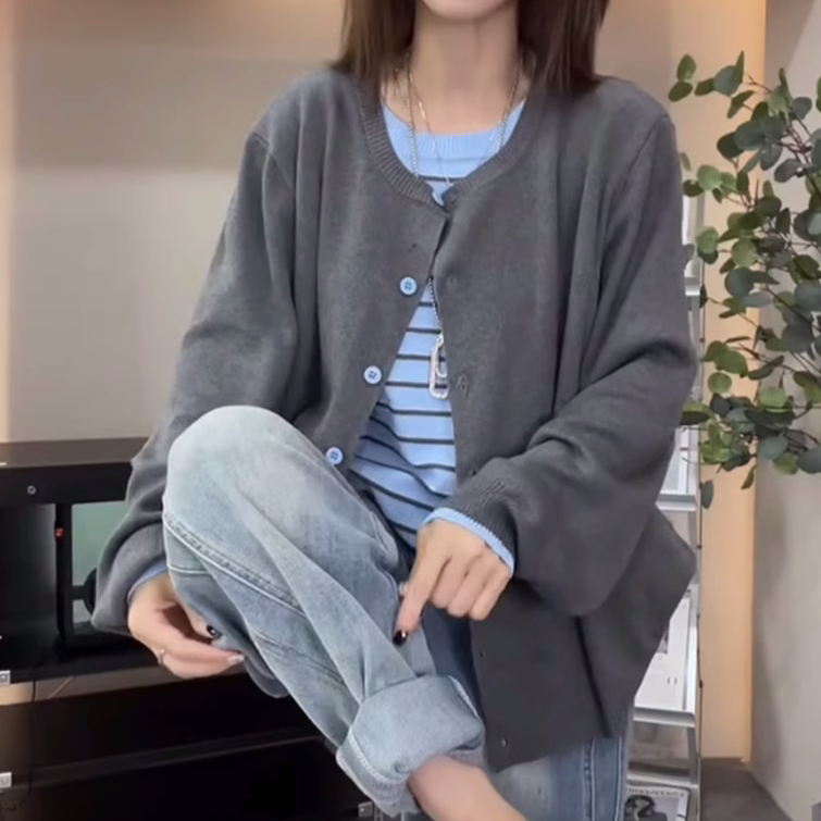 韩系黄色拼接条纹假两件针织衫毛衣春季设计感宽松减龄显瘦长袖女