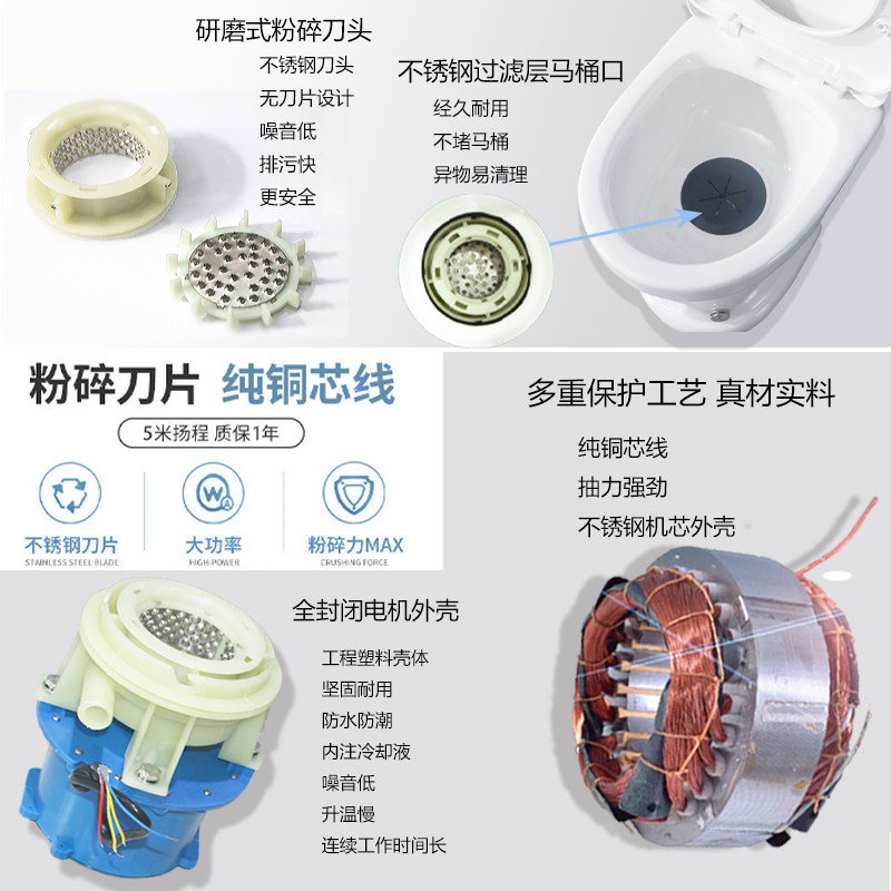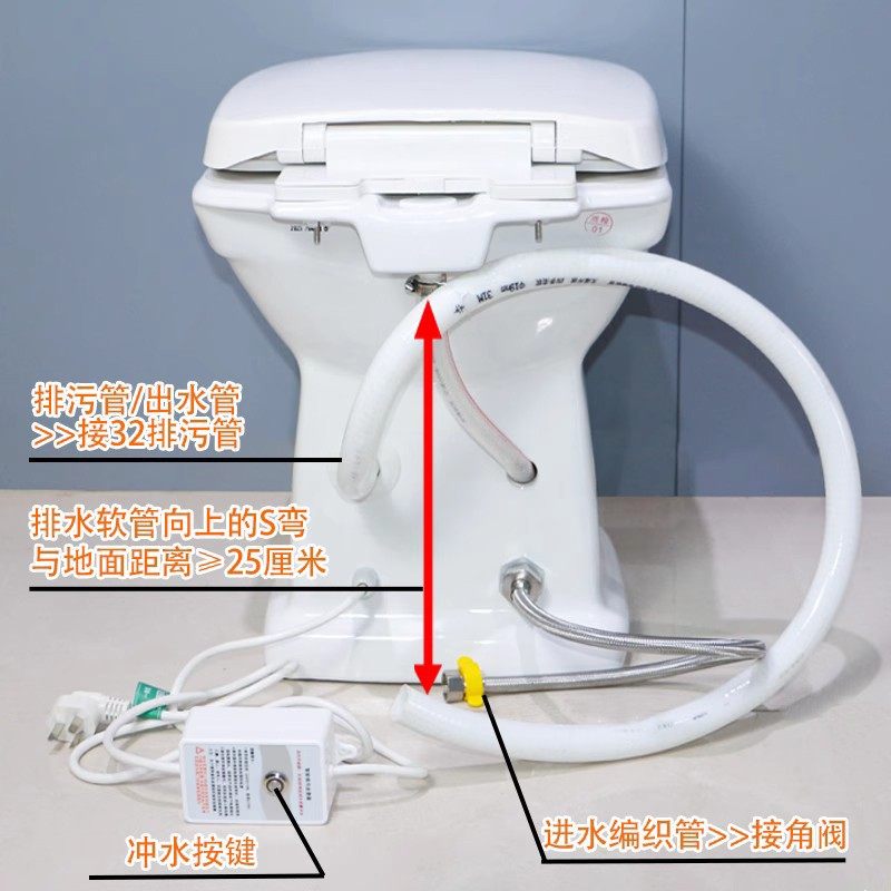 上海益高电动粉碎马桶出租房地下室阳台房车坐便器上平排强力排污